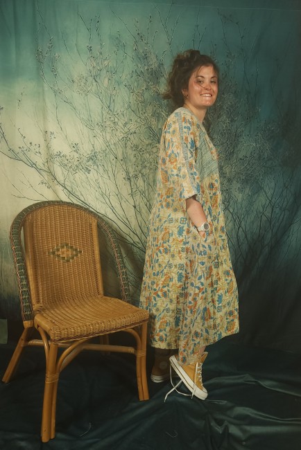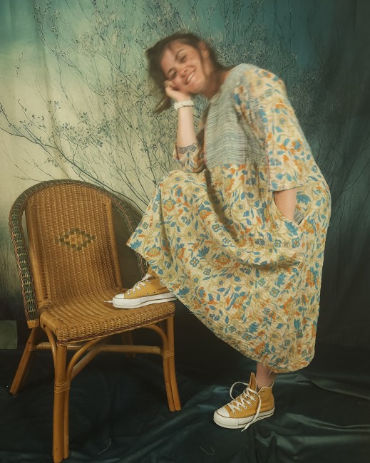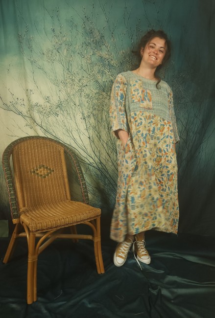 Robe légèrement empire , réalisée dans un très beau kantha ancien .