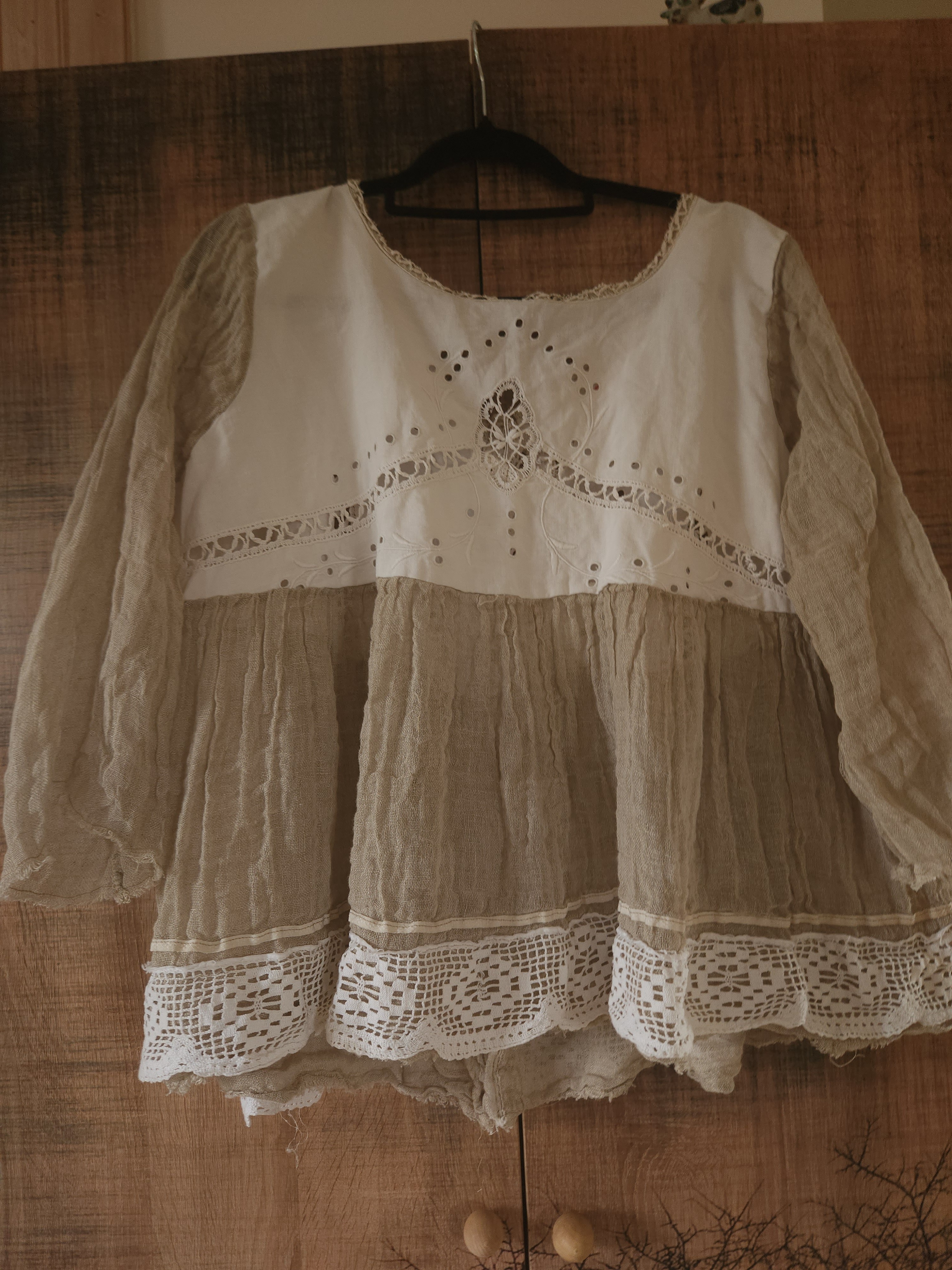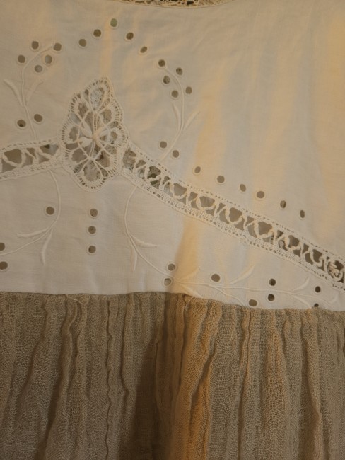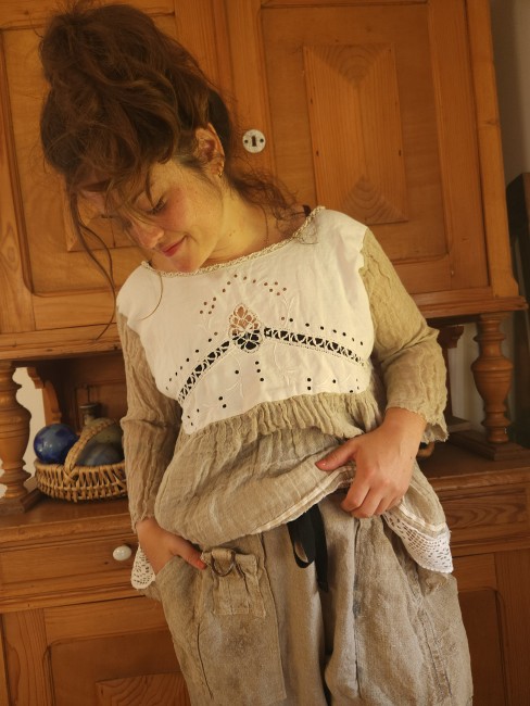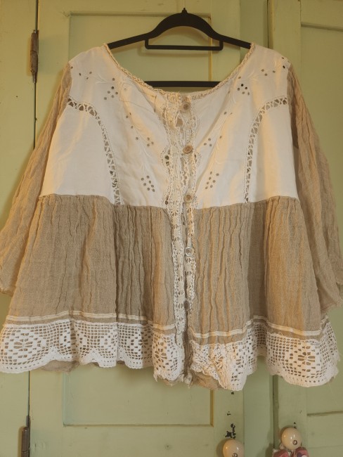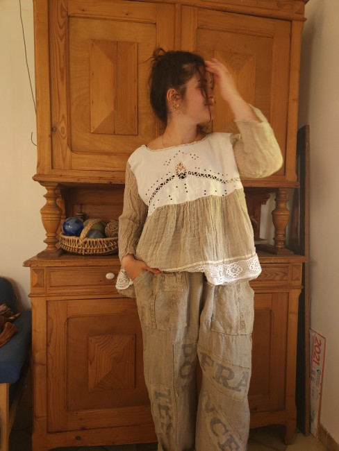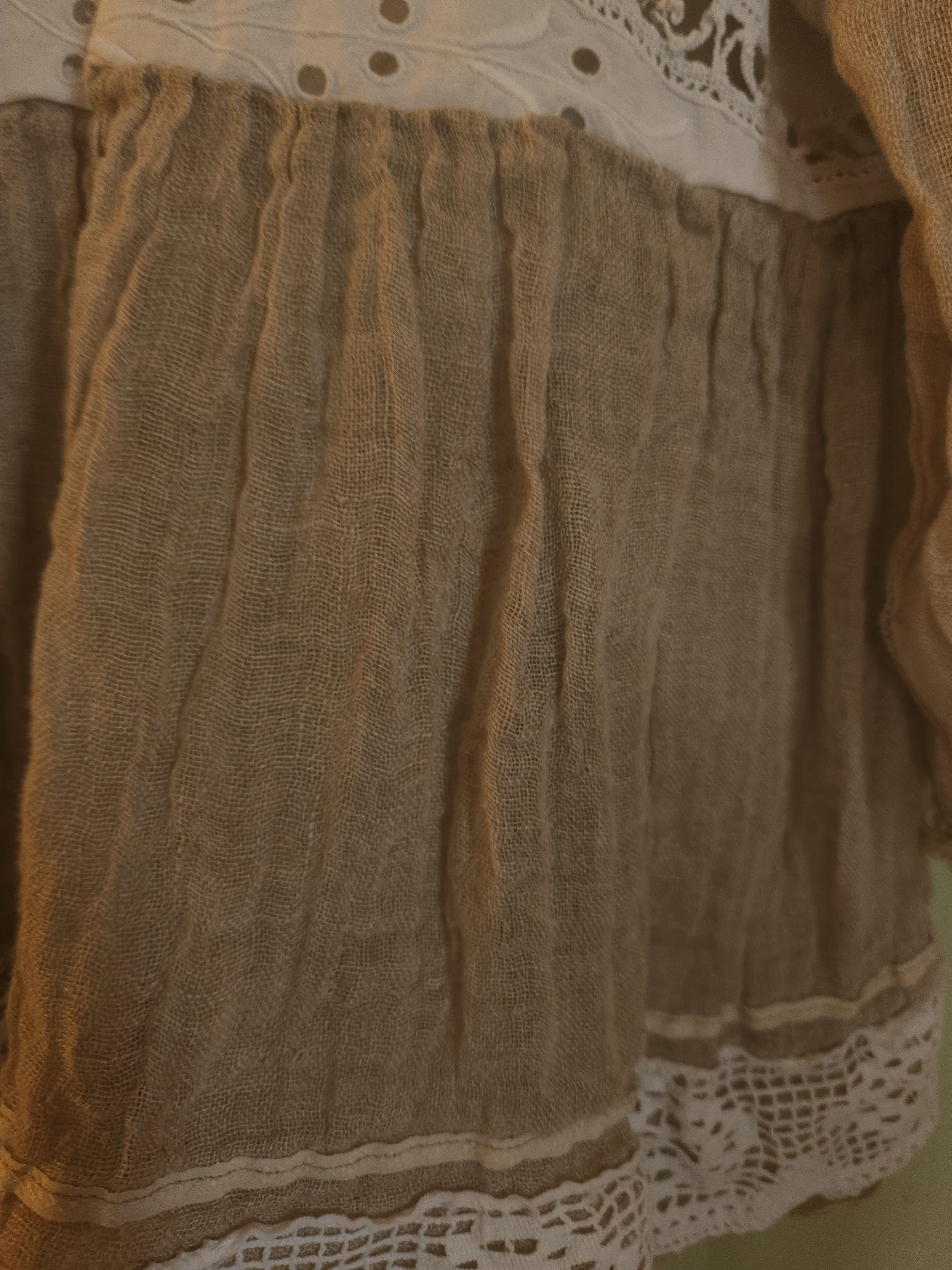 Realisée dans une gaze de lin de couleur taupe .