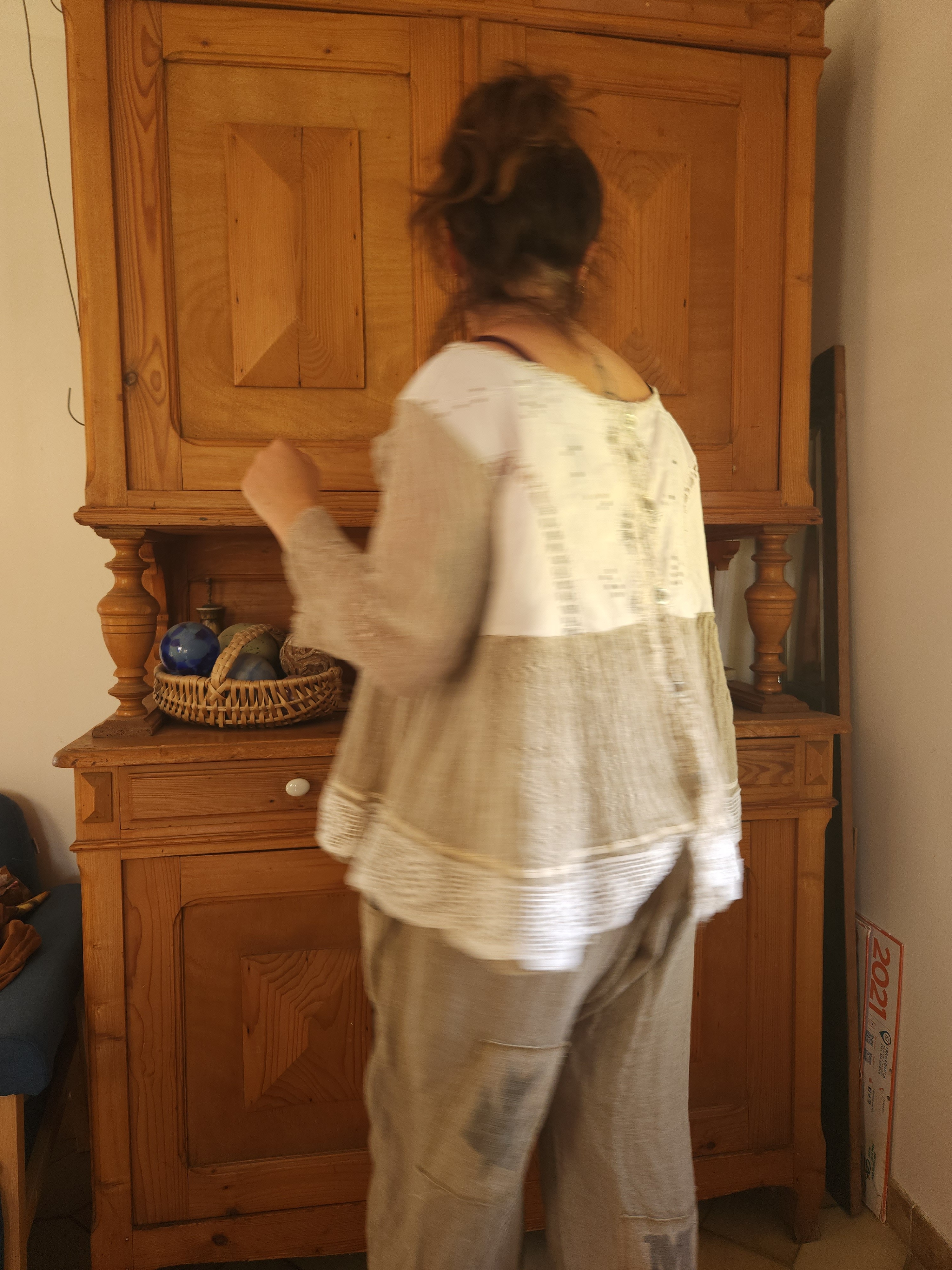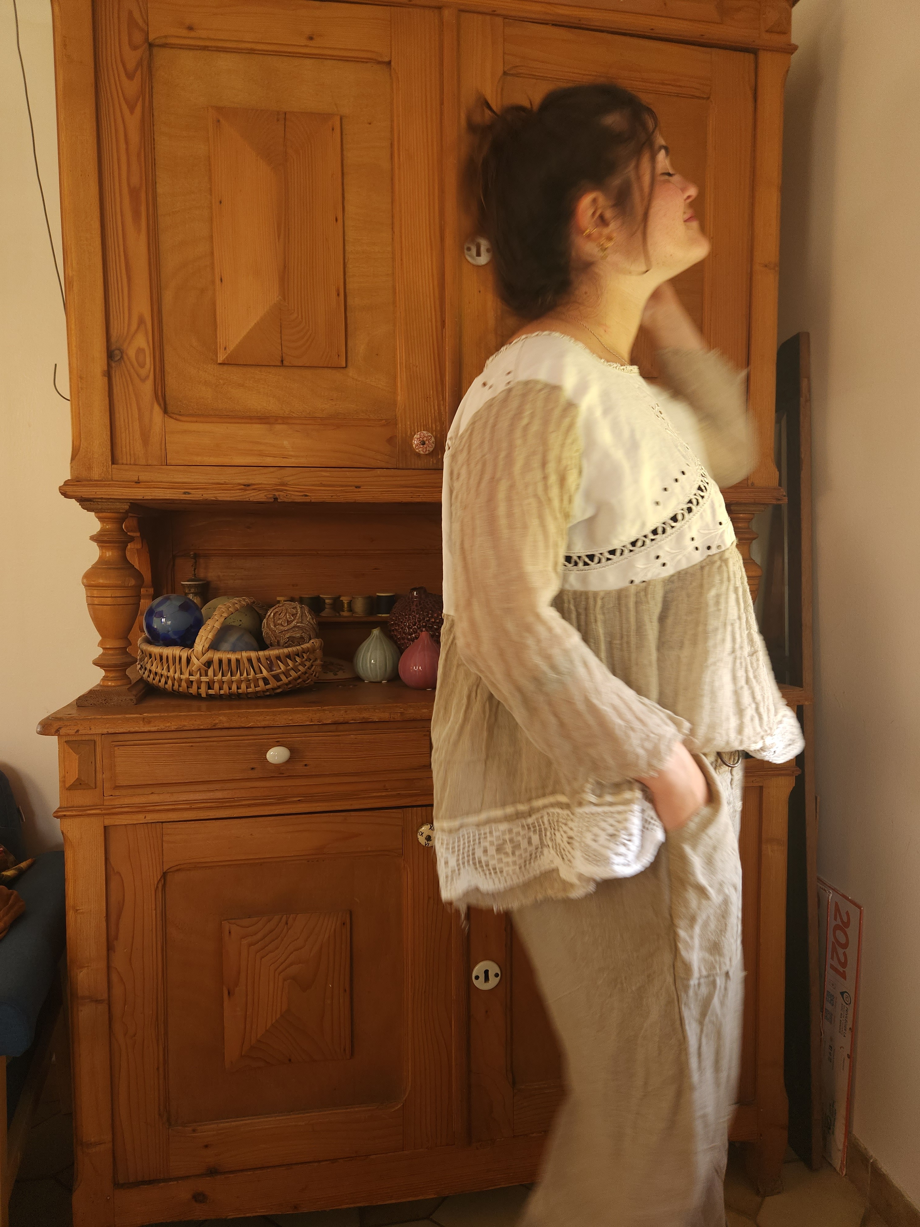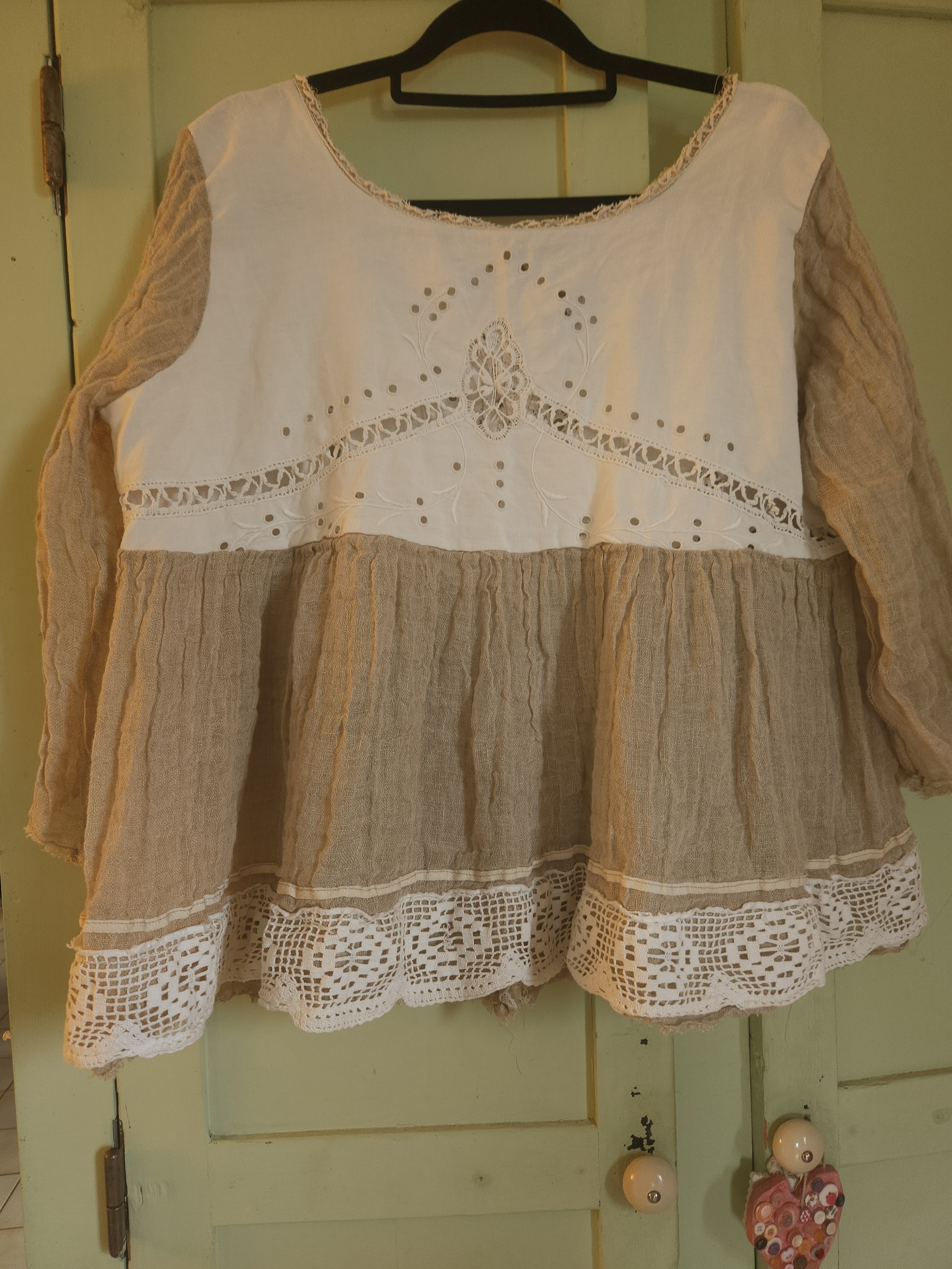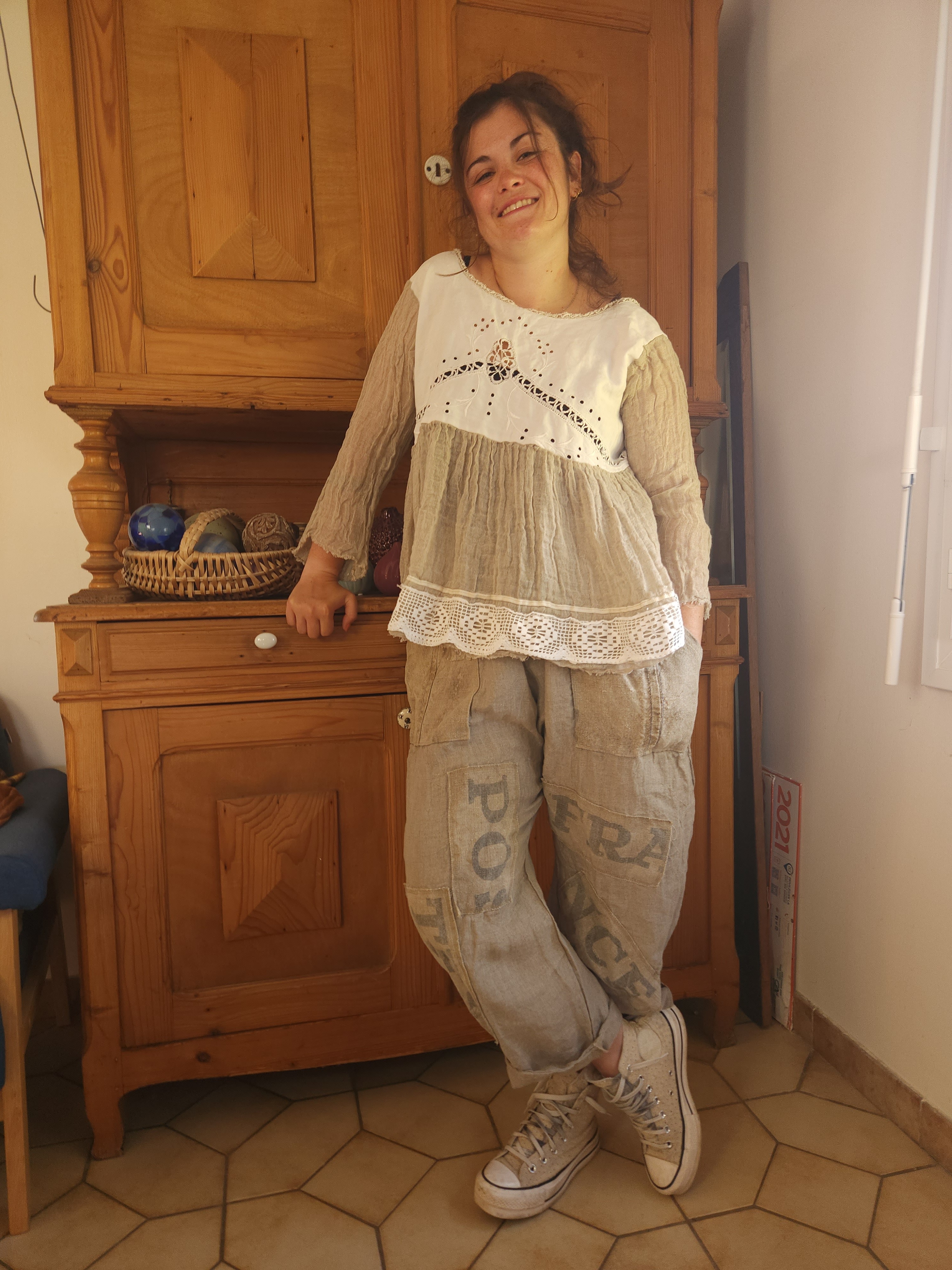 Realisée dans une gaze de lin de couleur taupe .