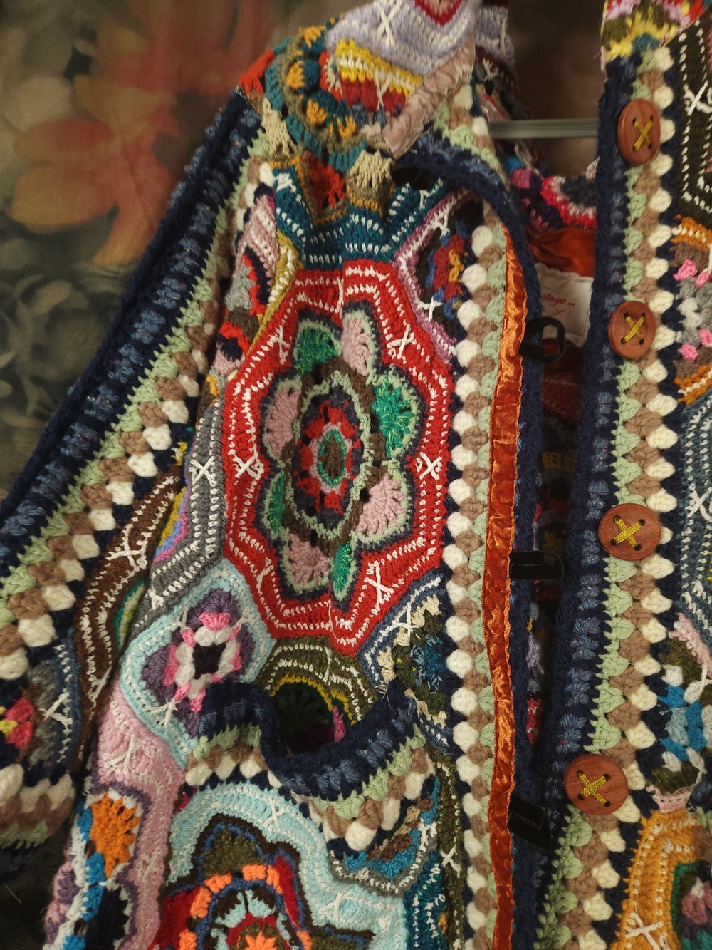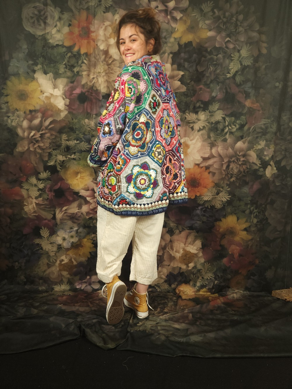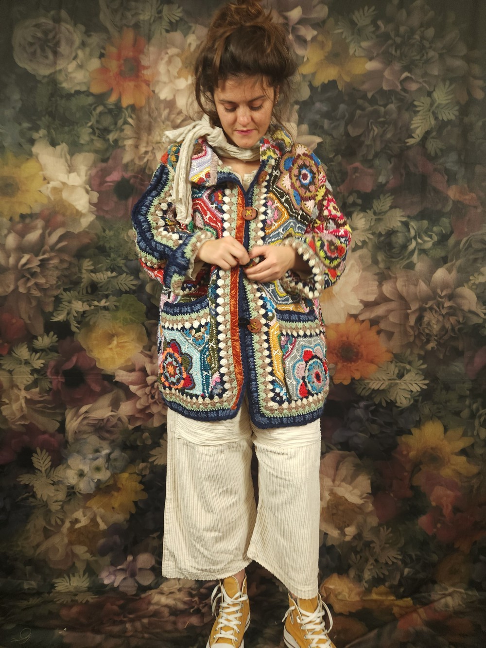 Un fabuleux travail de crochet sur cette veste assemblée et travaillée