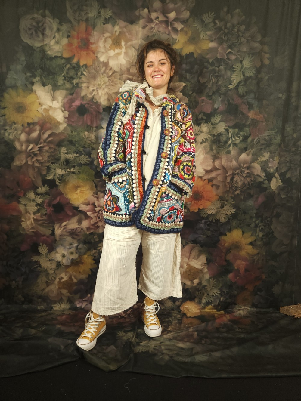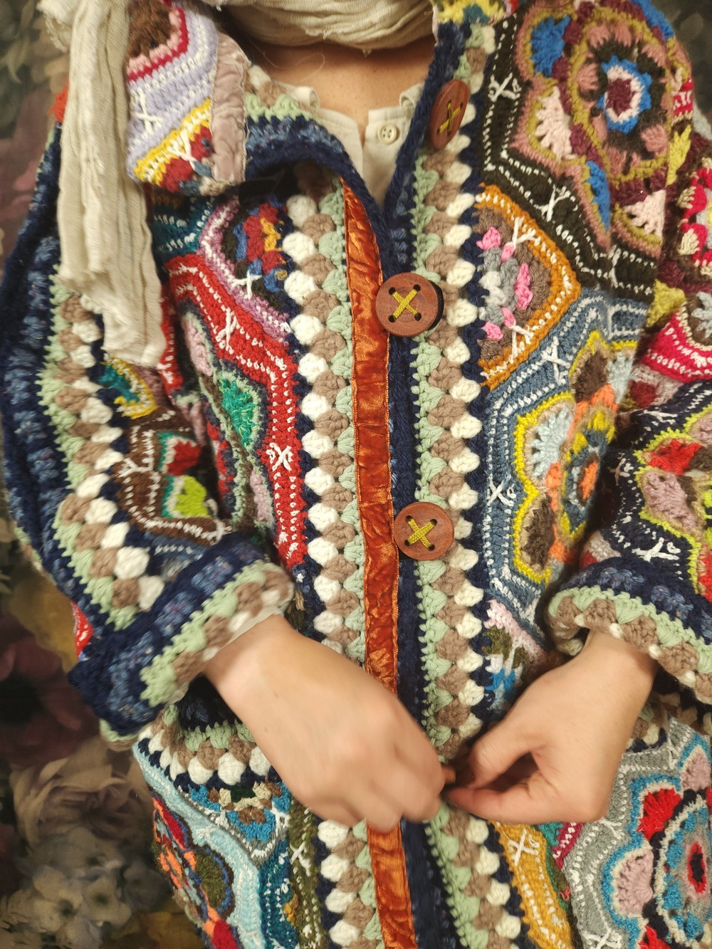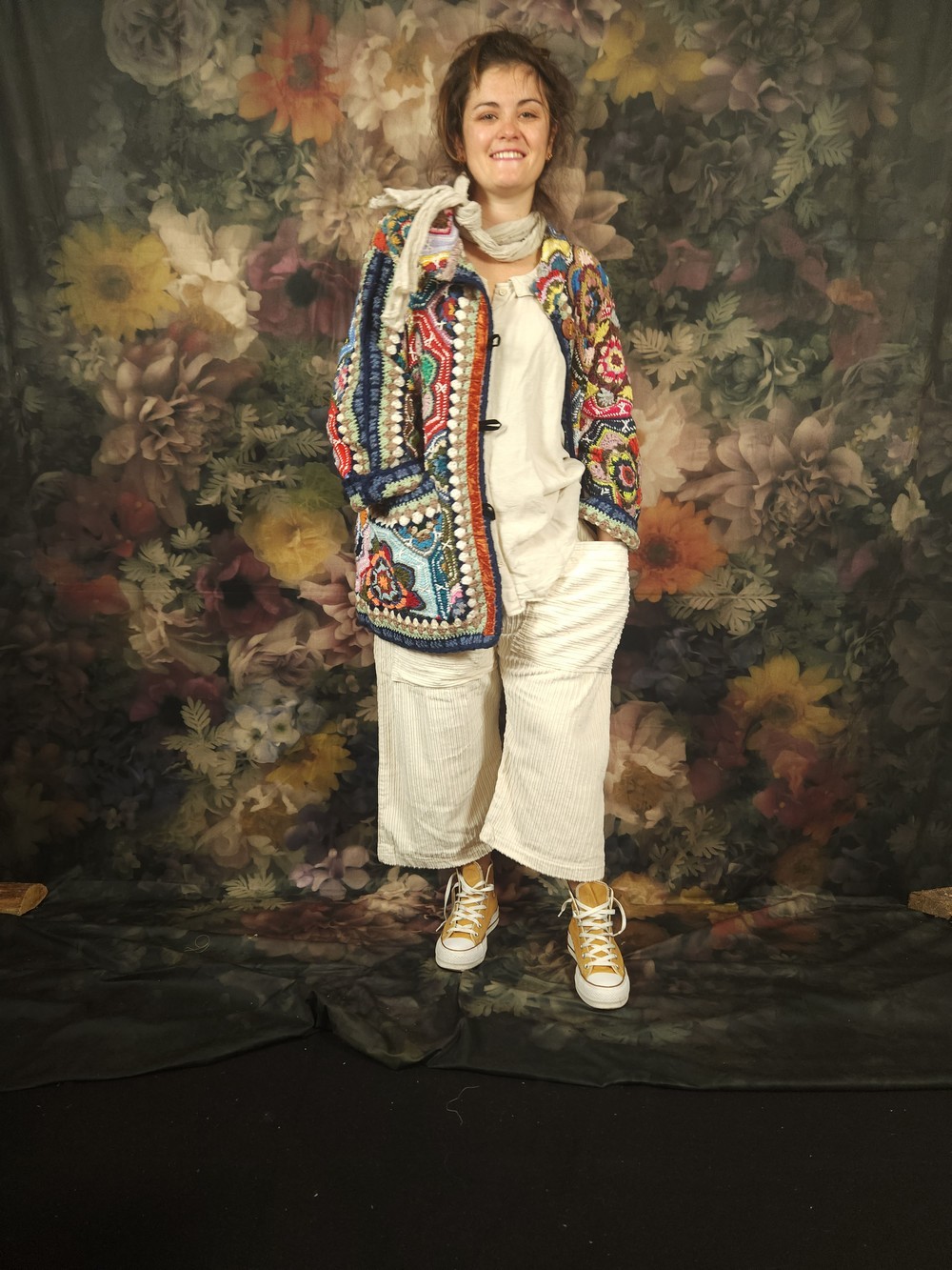 Un fabuleux travail de crochet sur cette veste assemblée et travaillée
