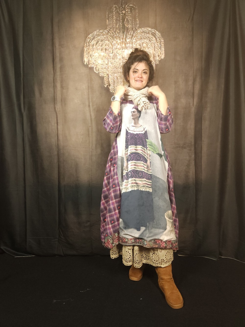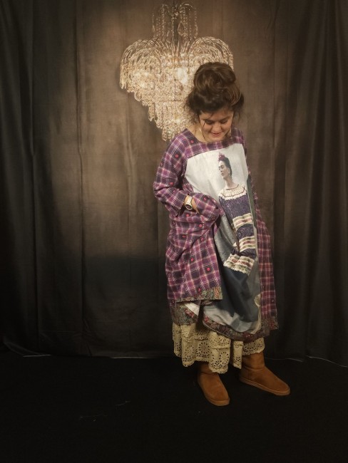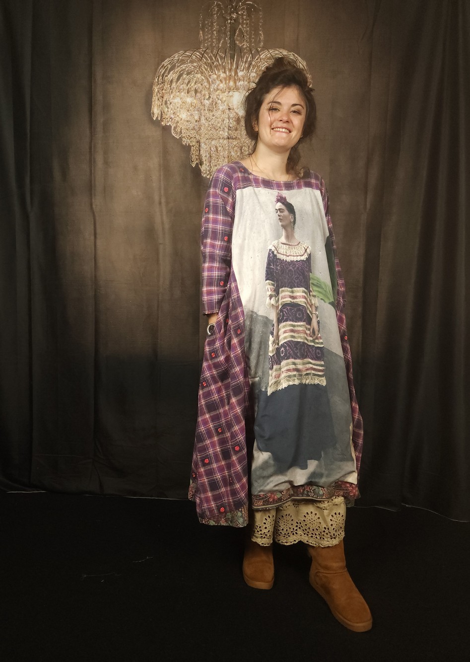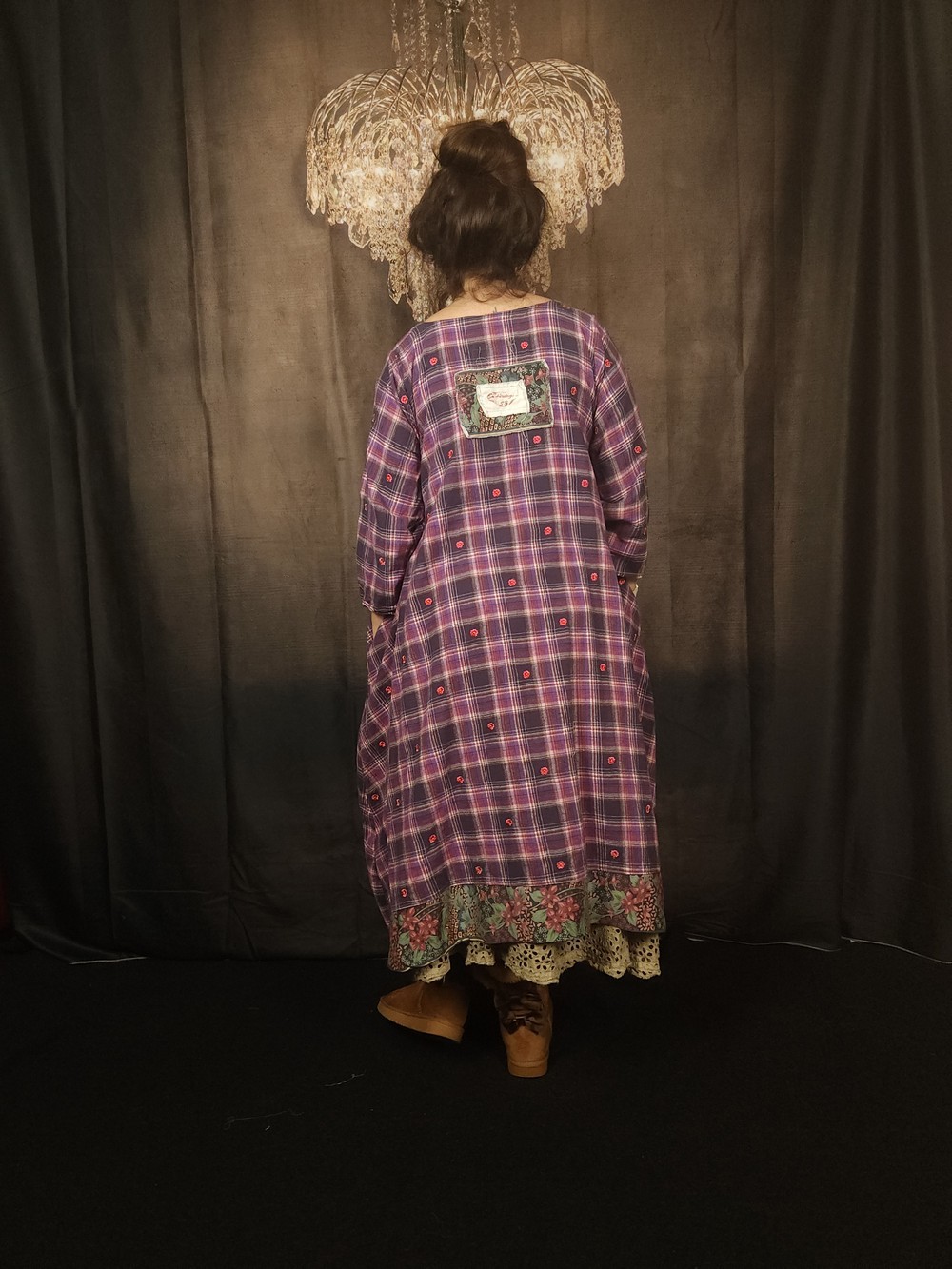 Pièce unique pour cette robe trapèze en coton gratté entièrement brodé de