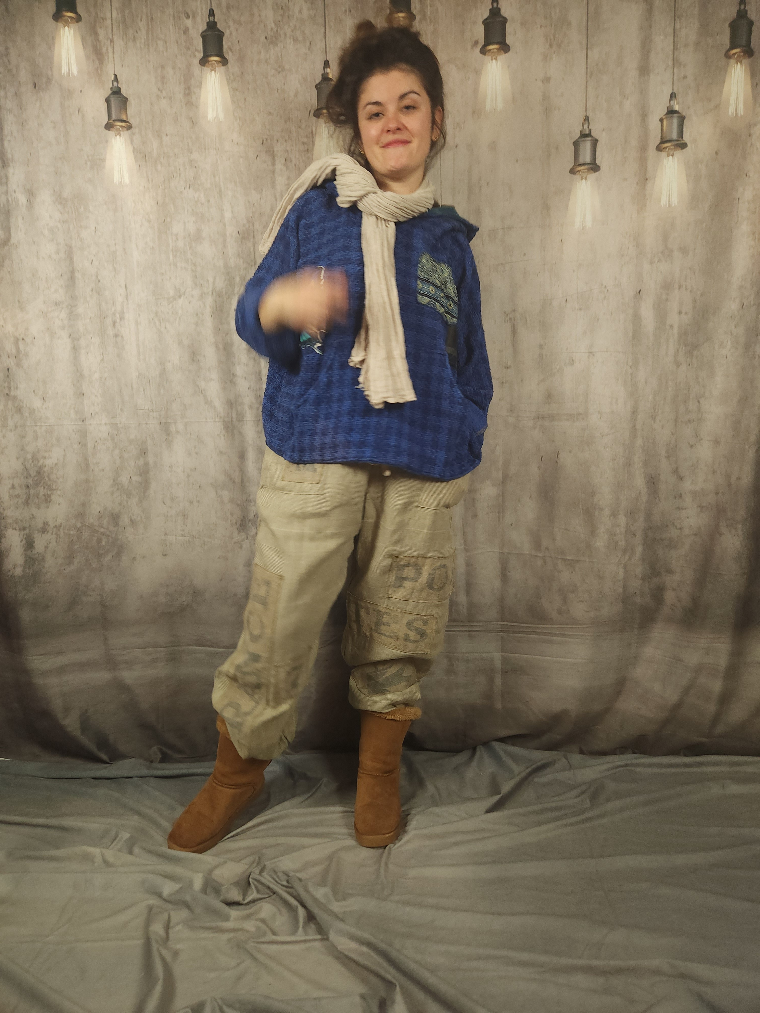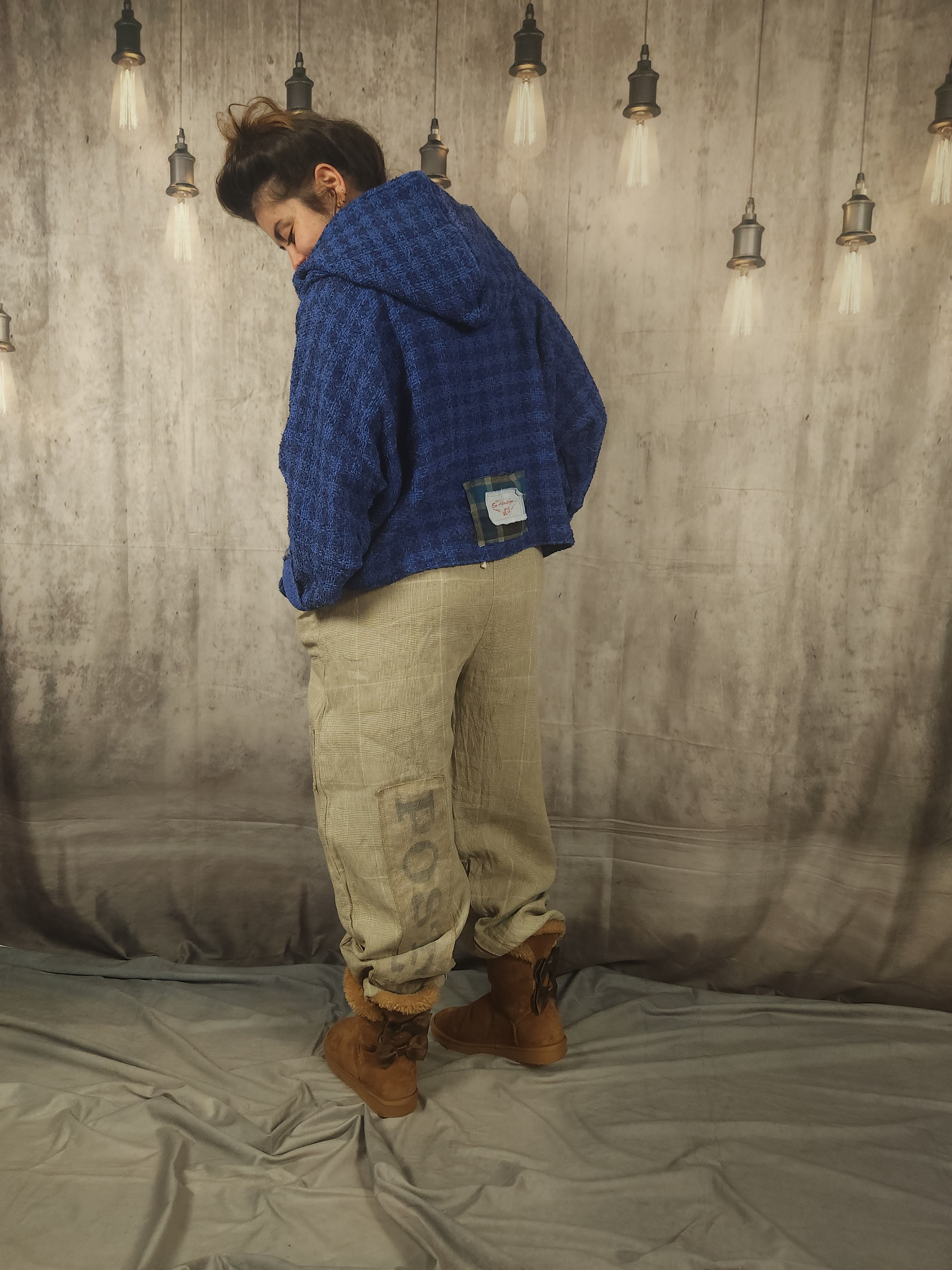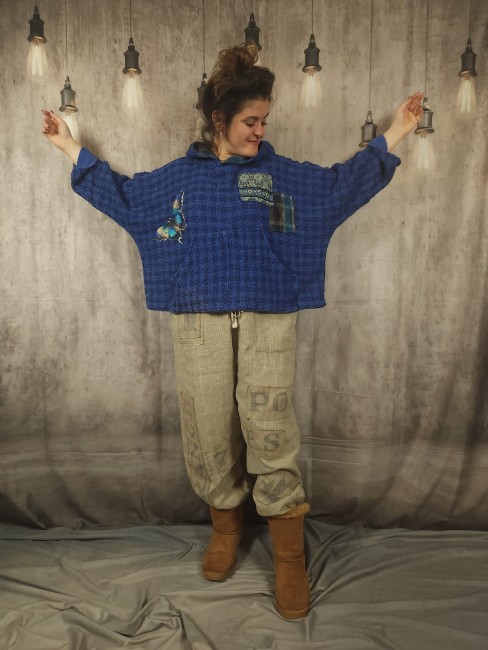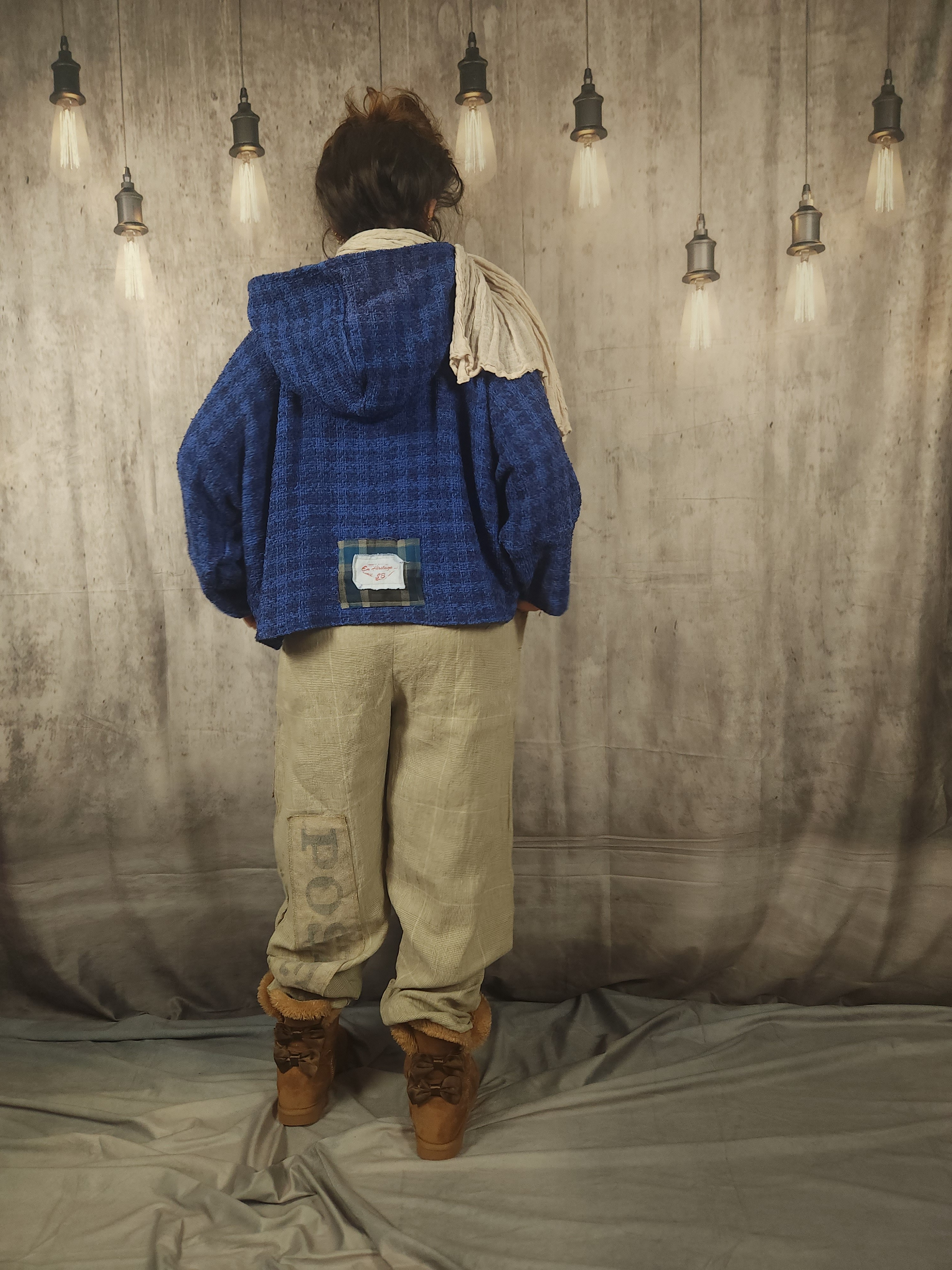 Pièce unique pour ce pull réalisé dans un beau tweed coton ancien ,
