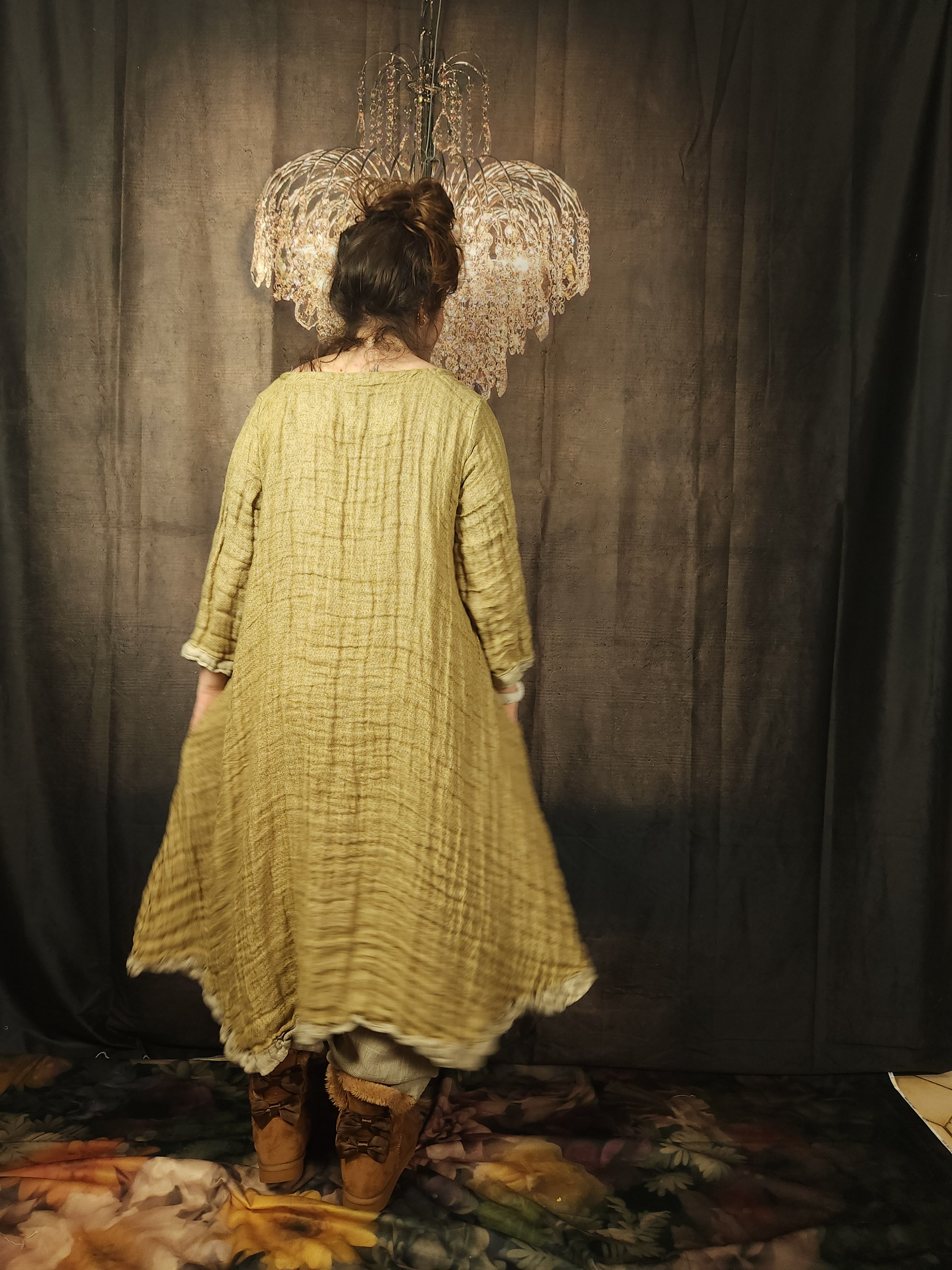 Robe trapèze réalisée dans une très belle double gaze de lin .
