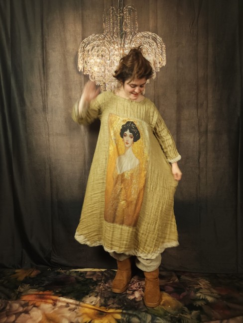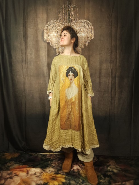 Pièce unique , robe trapèze , oversize , lin , bohème .