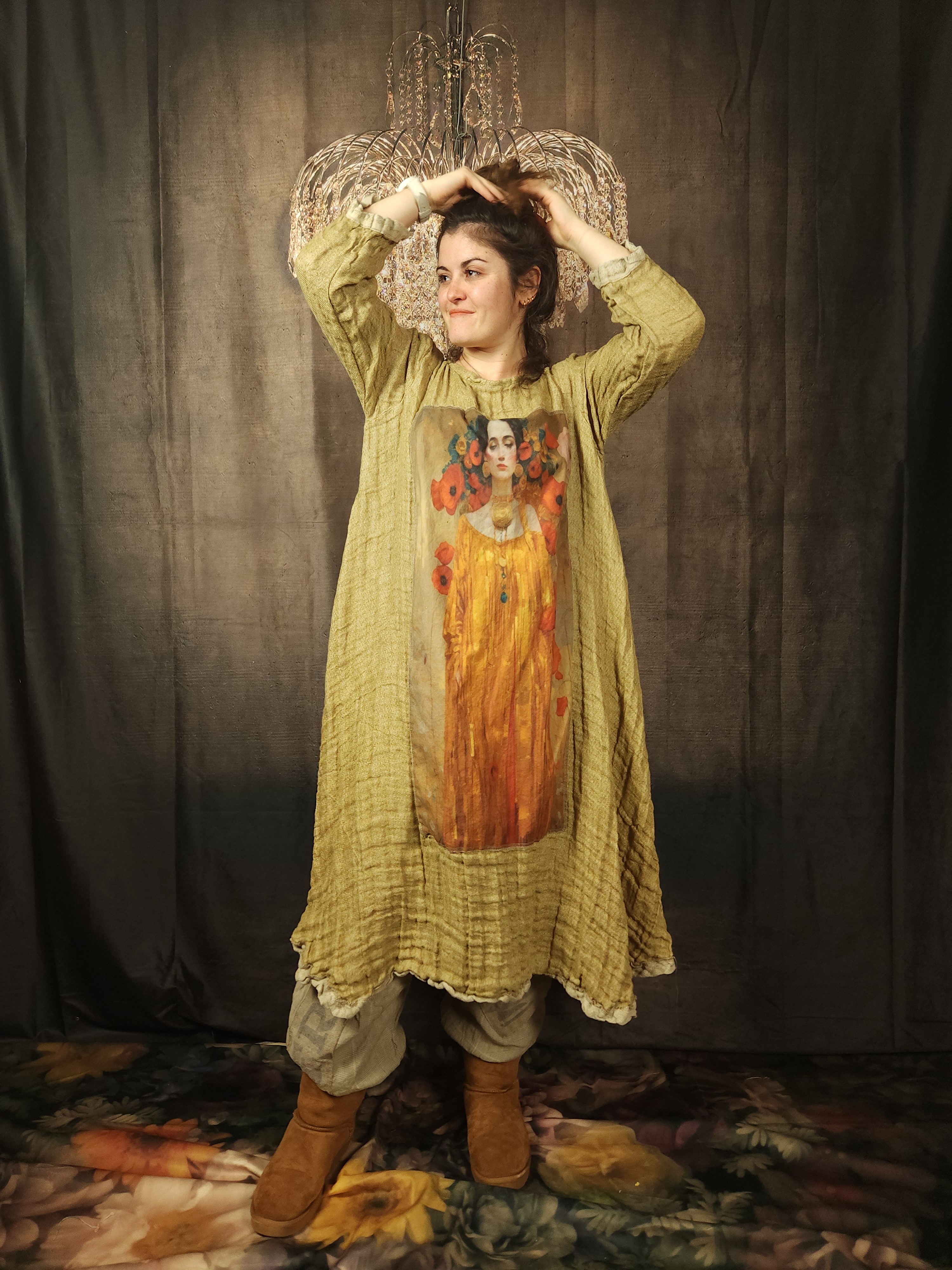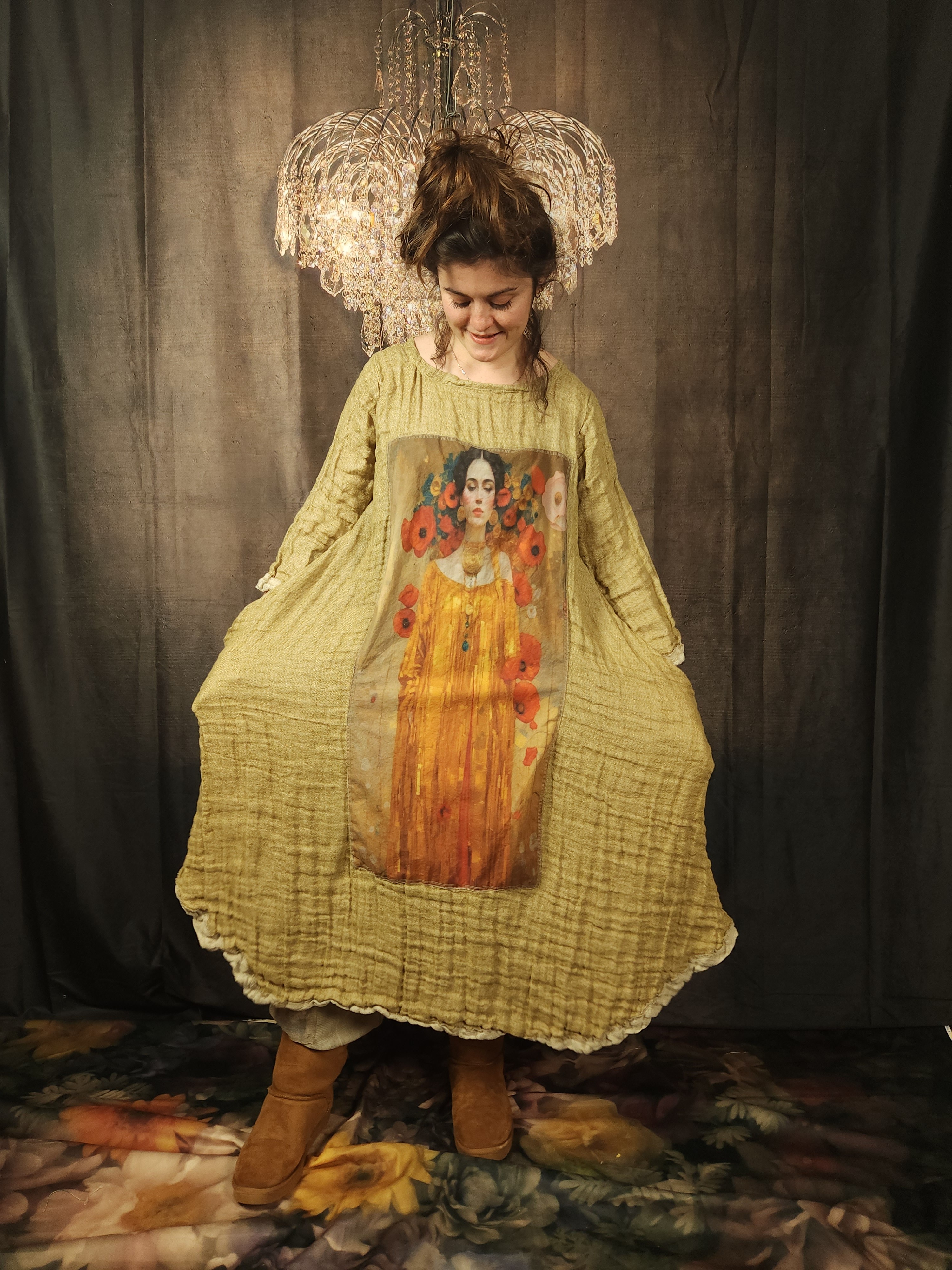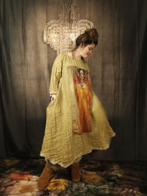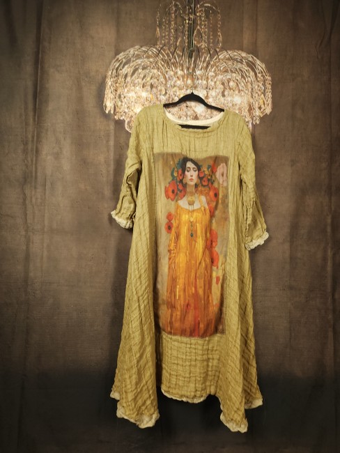 Robe trapèze réalisée dans une très belle double gaze de lin .