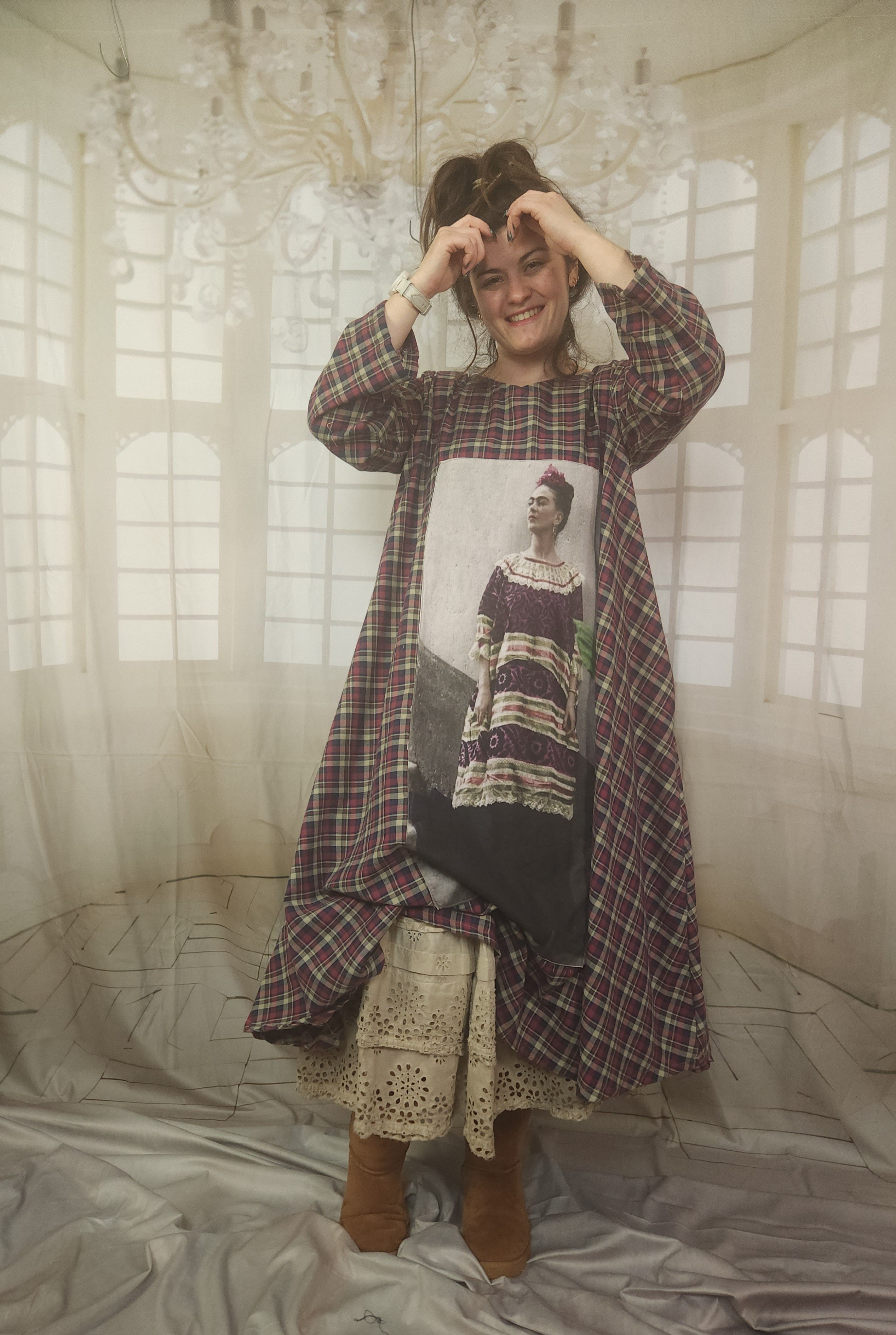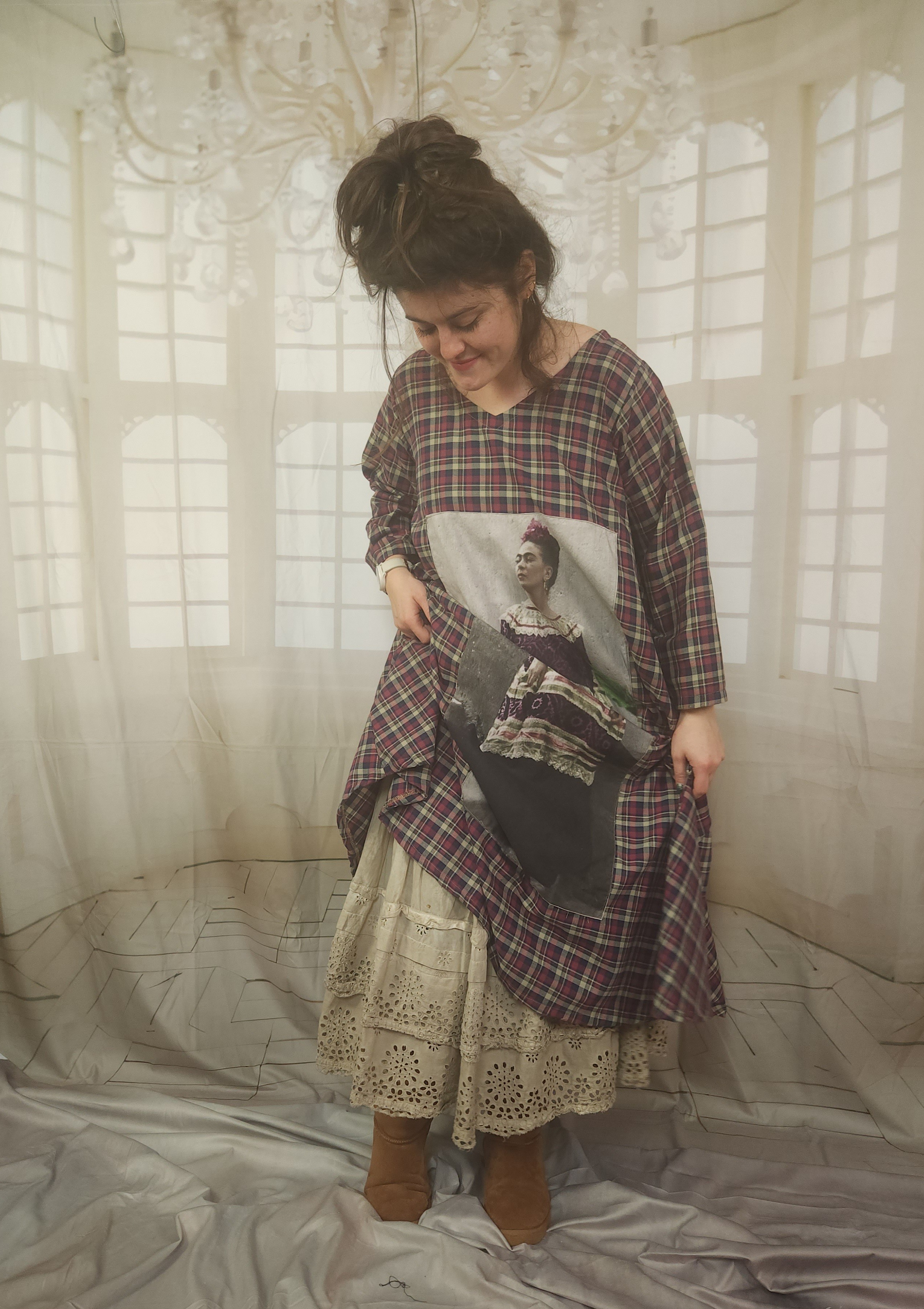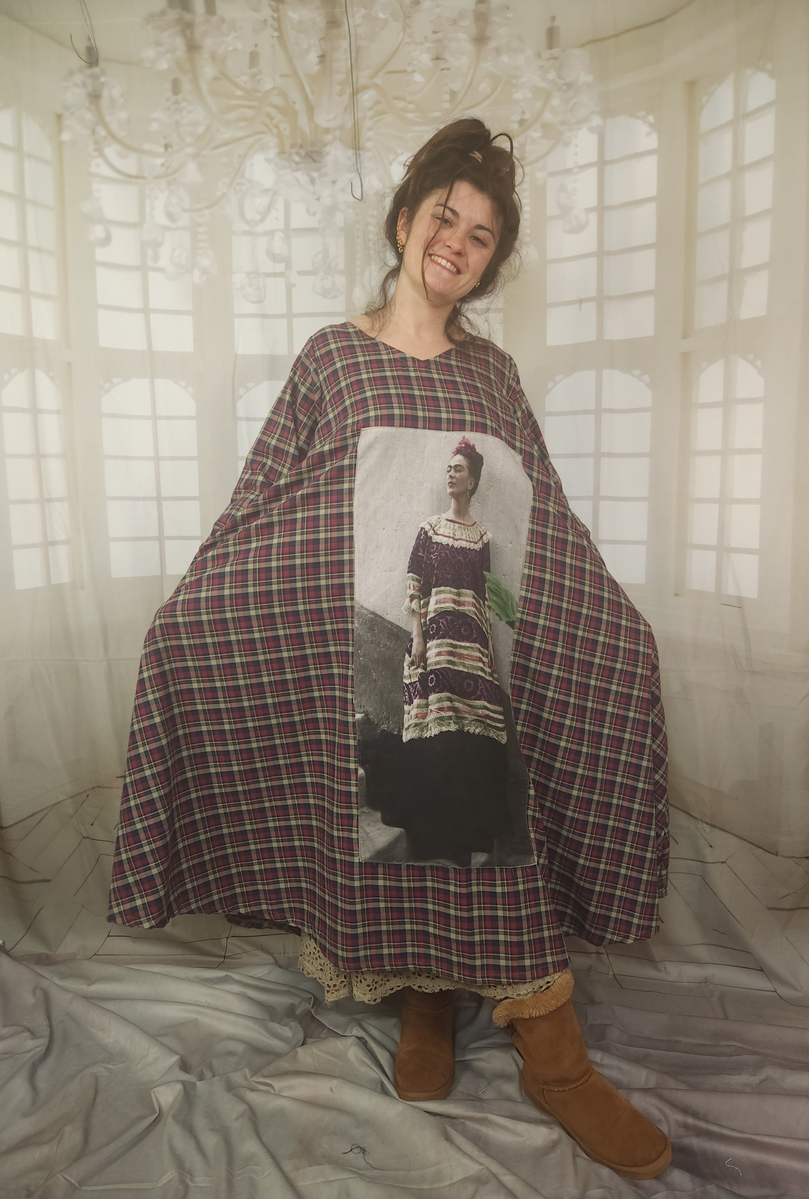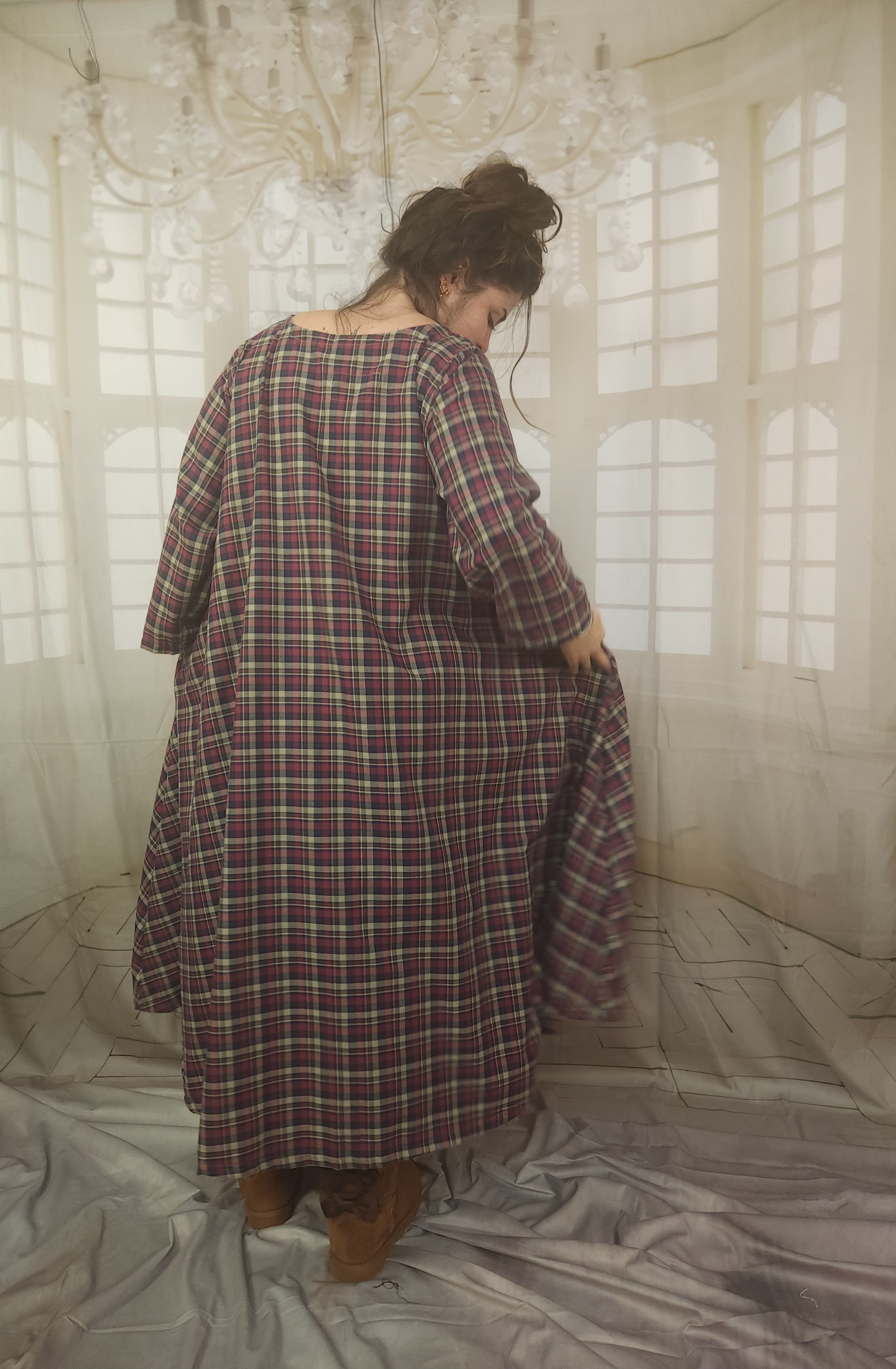 Robe de forme trapèze , réalisée dans un beau coton tout doux,
