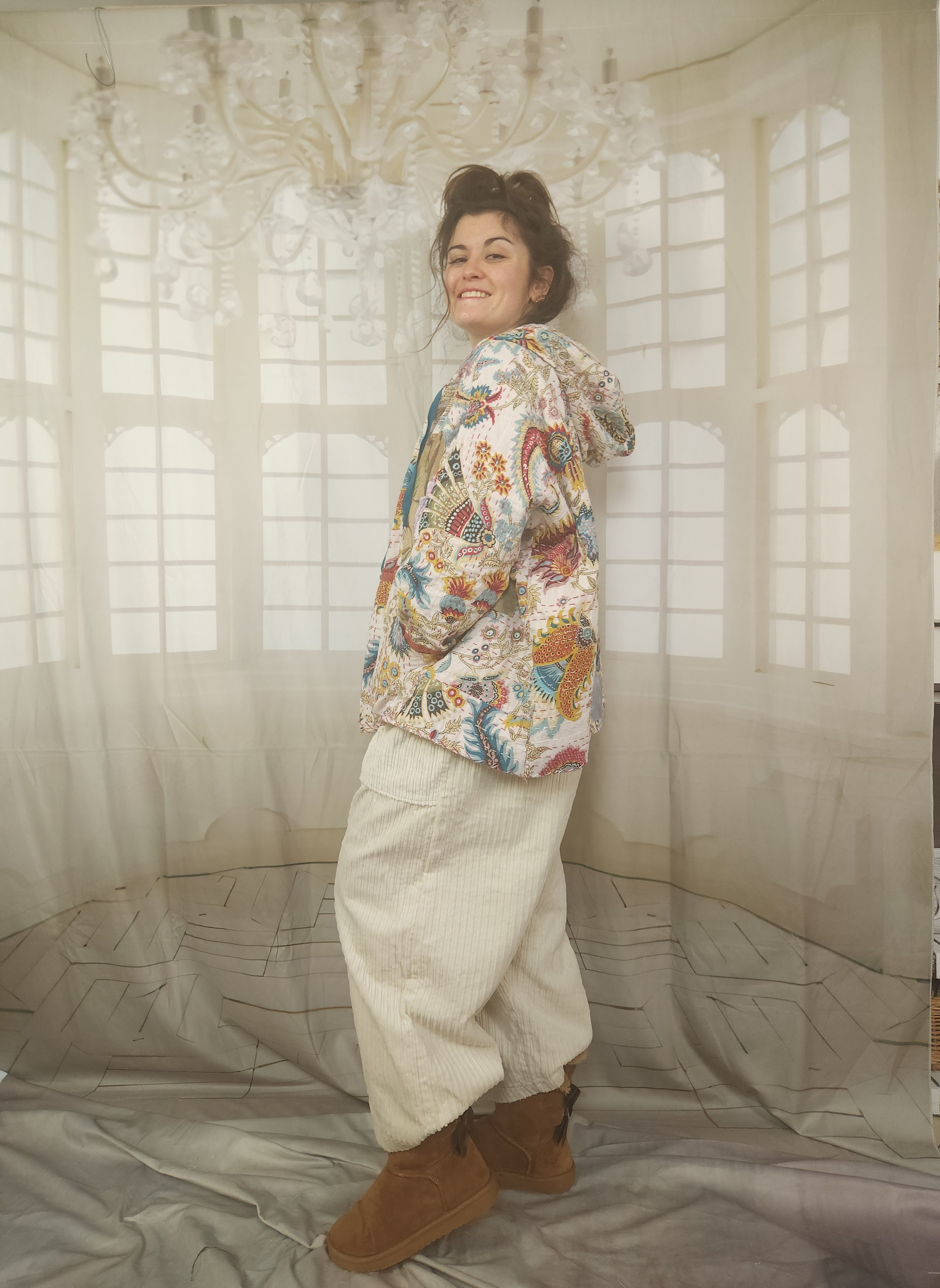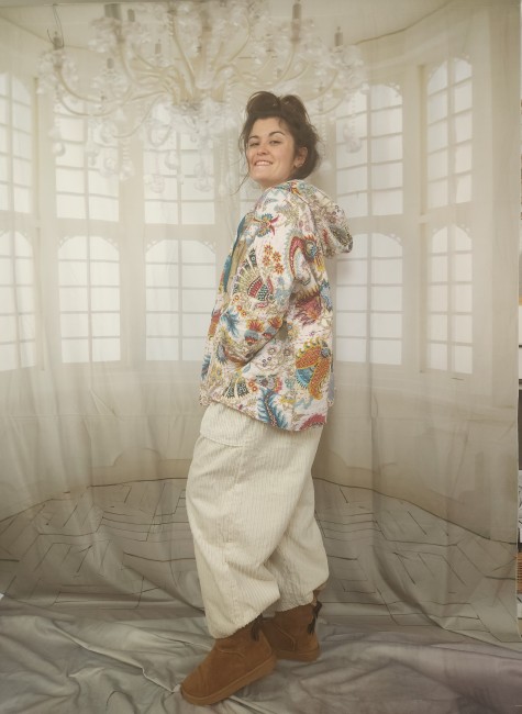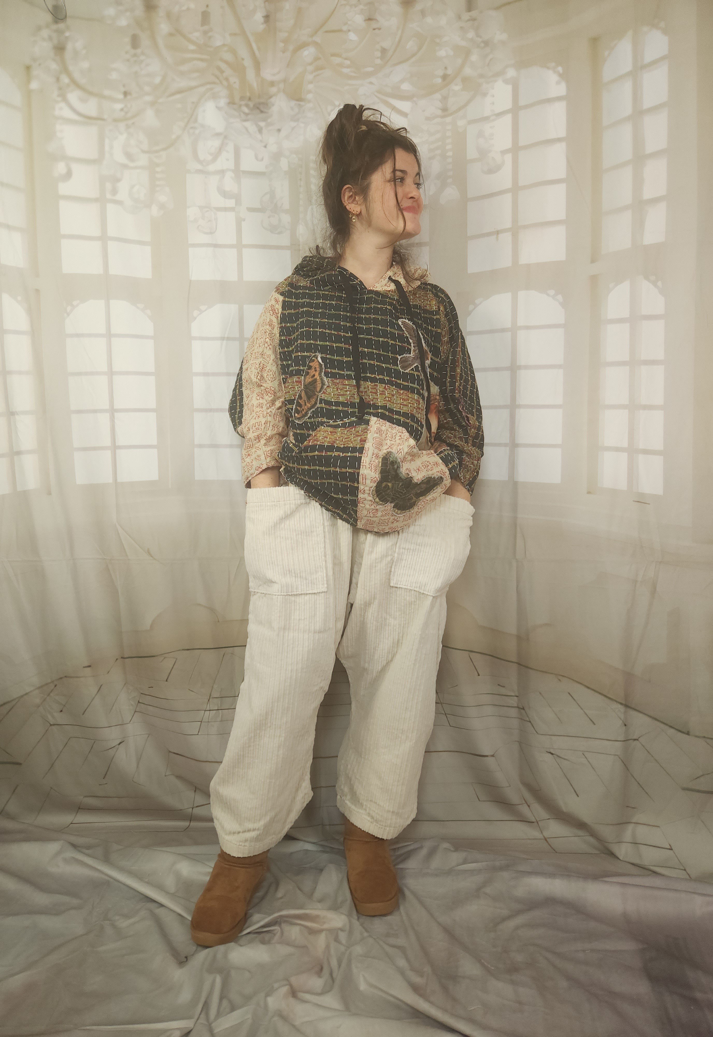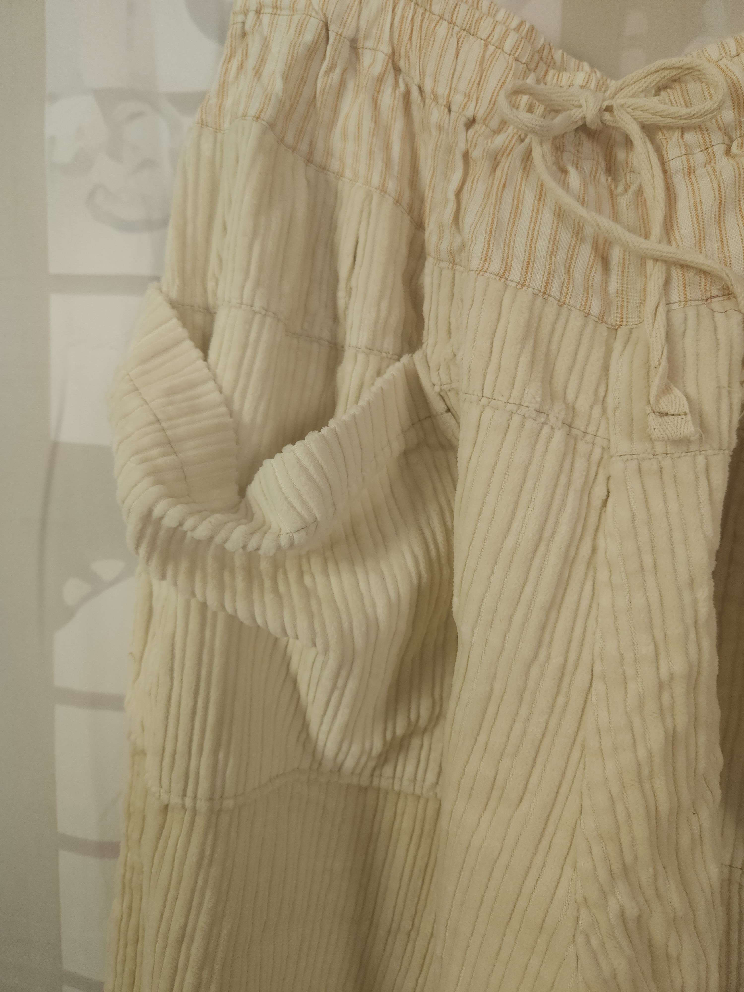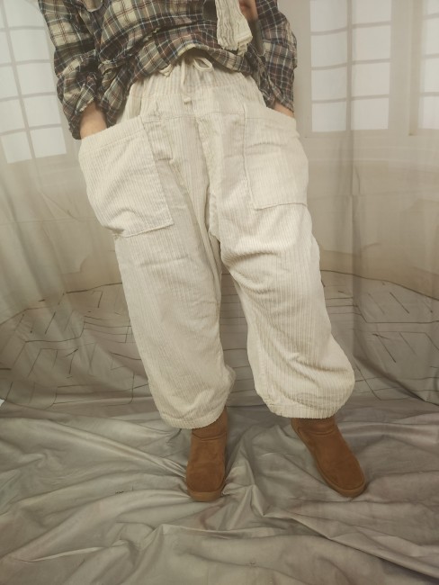 Panta à fourche basse , réalisé dans un velours à grosses côtes