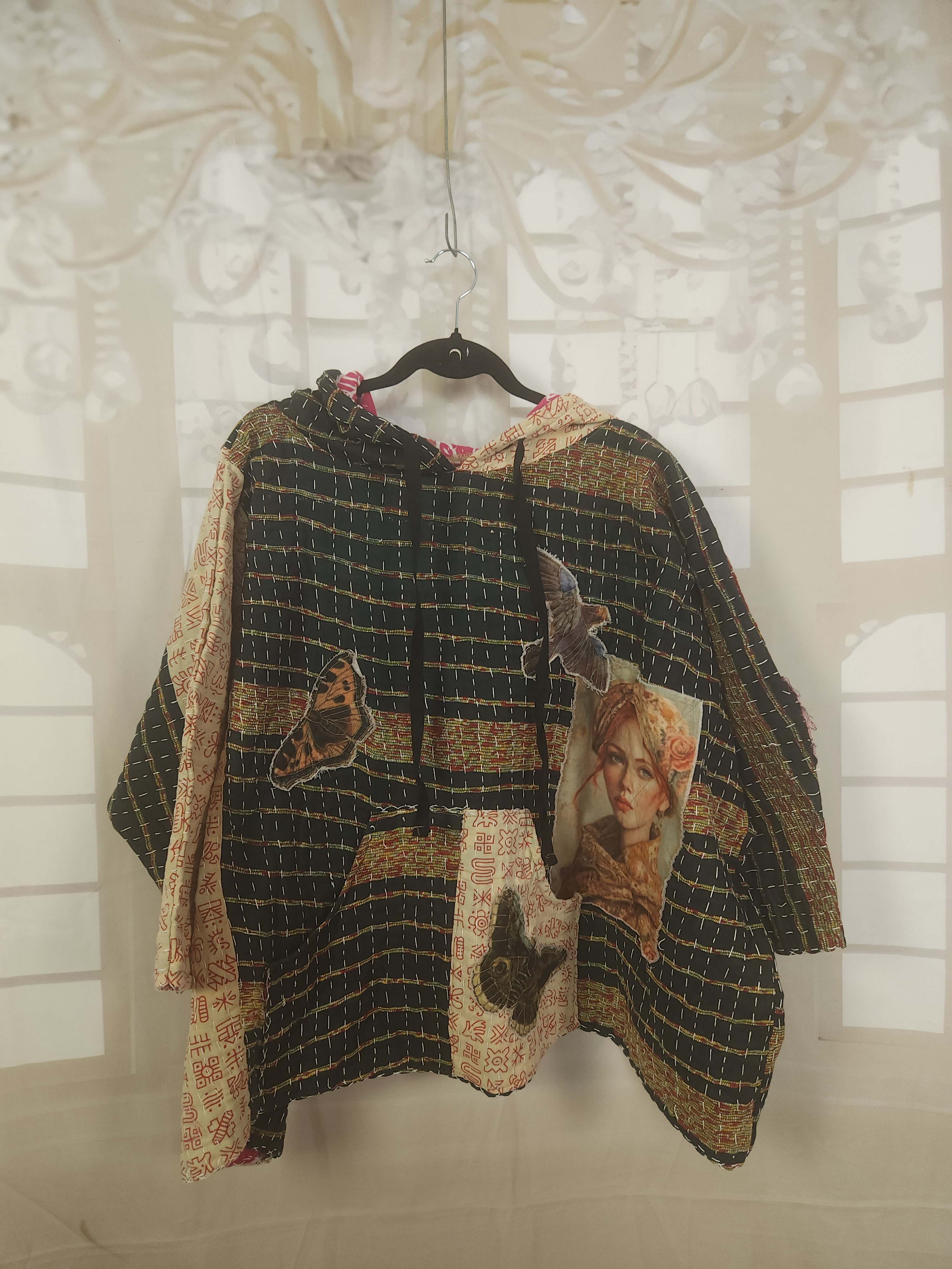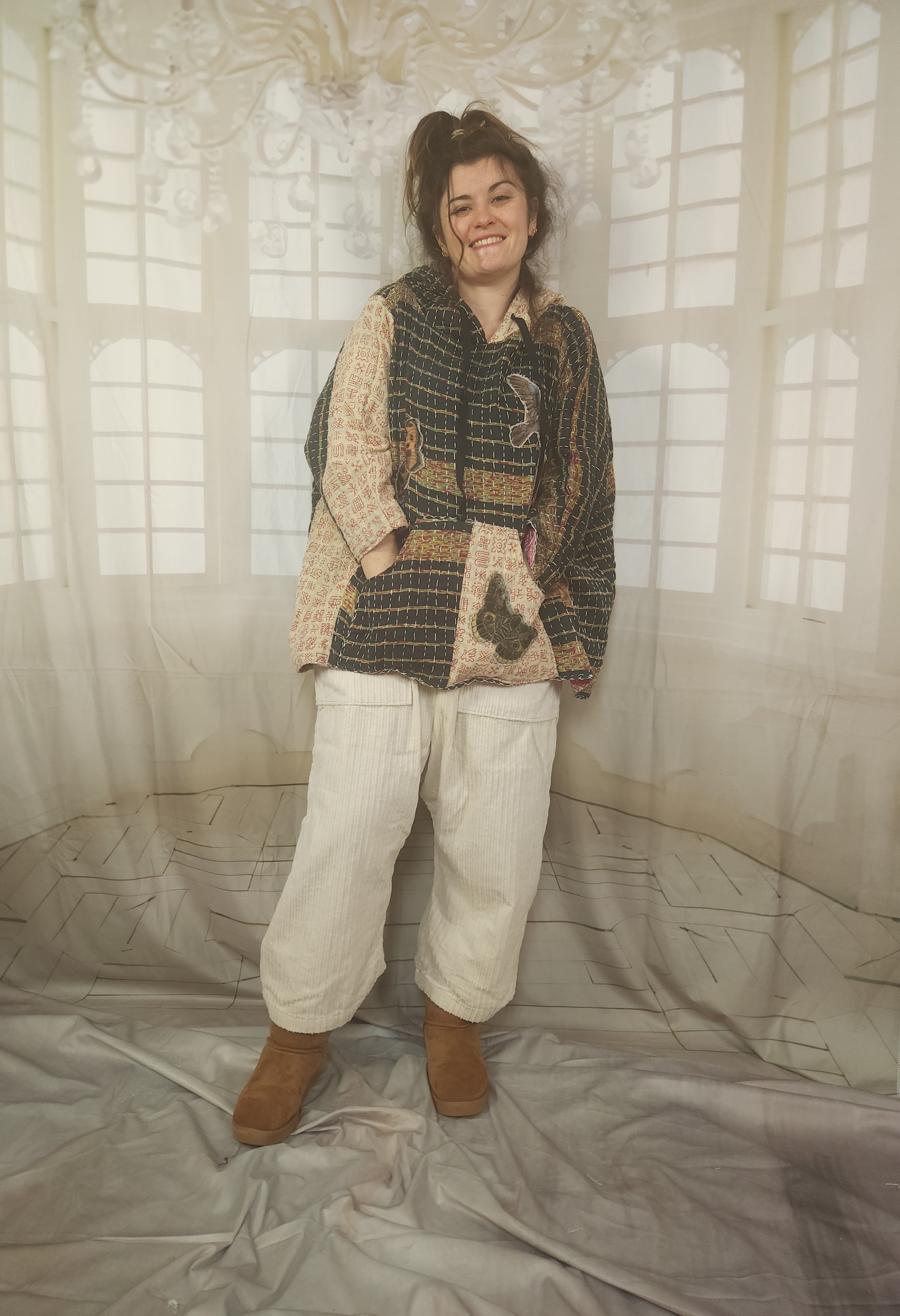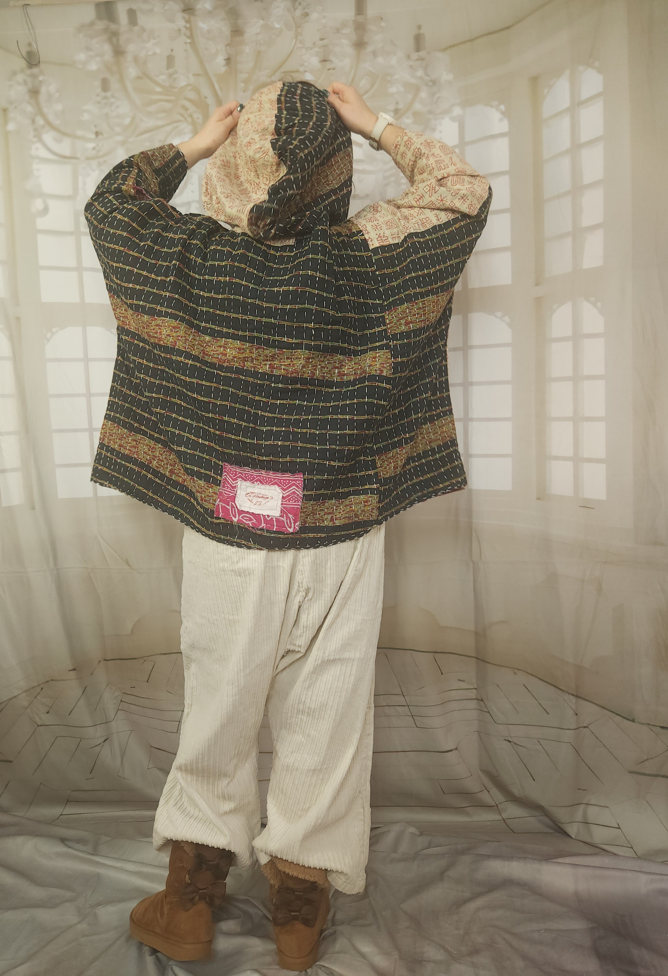 Pull ou vareuse oversize réalisé dans un beau kantha très souple , avec