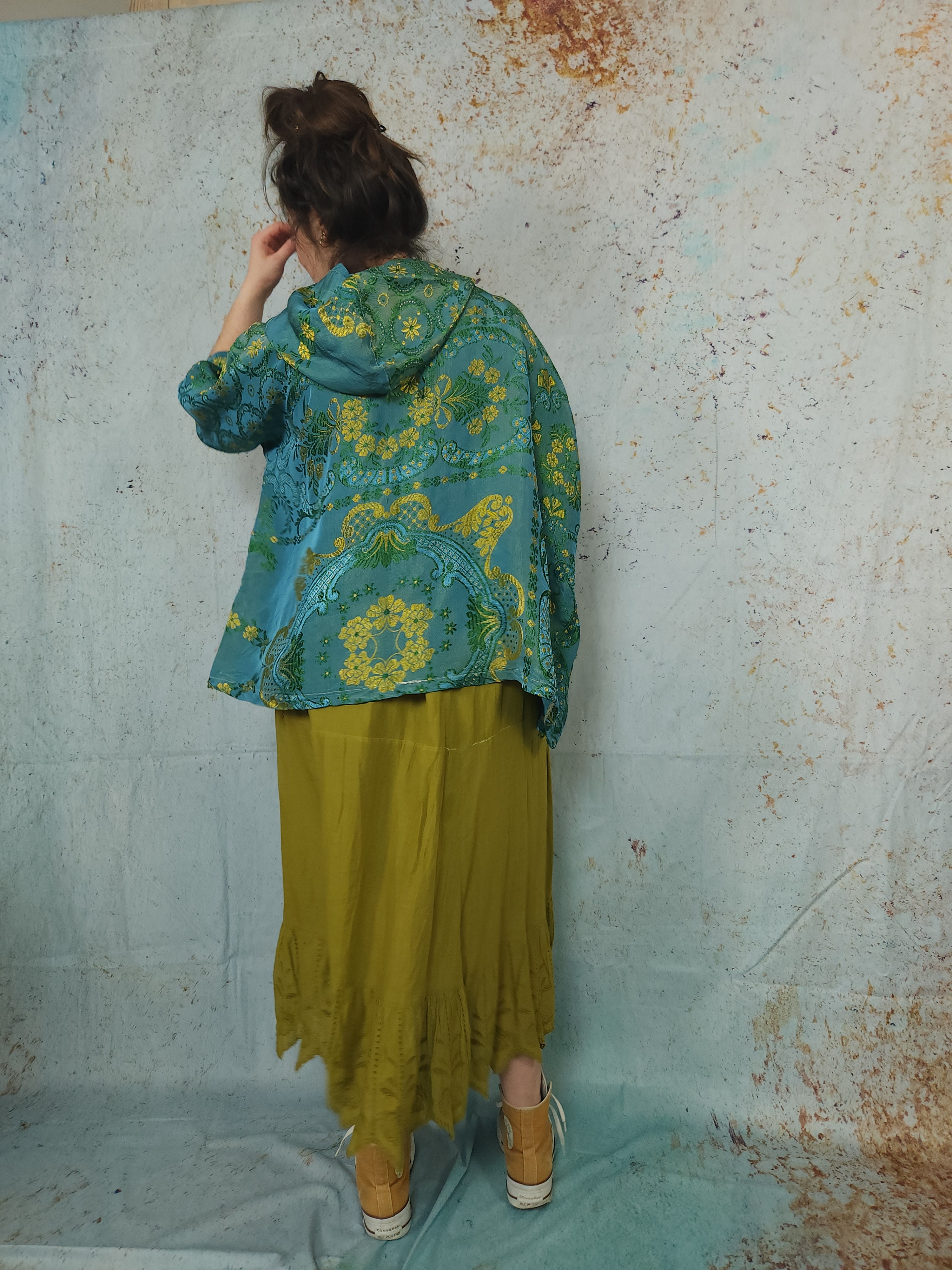 Elle est en viscose avec fils de soie tissés .