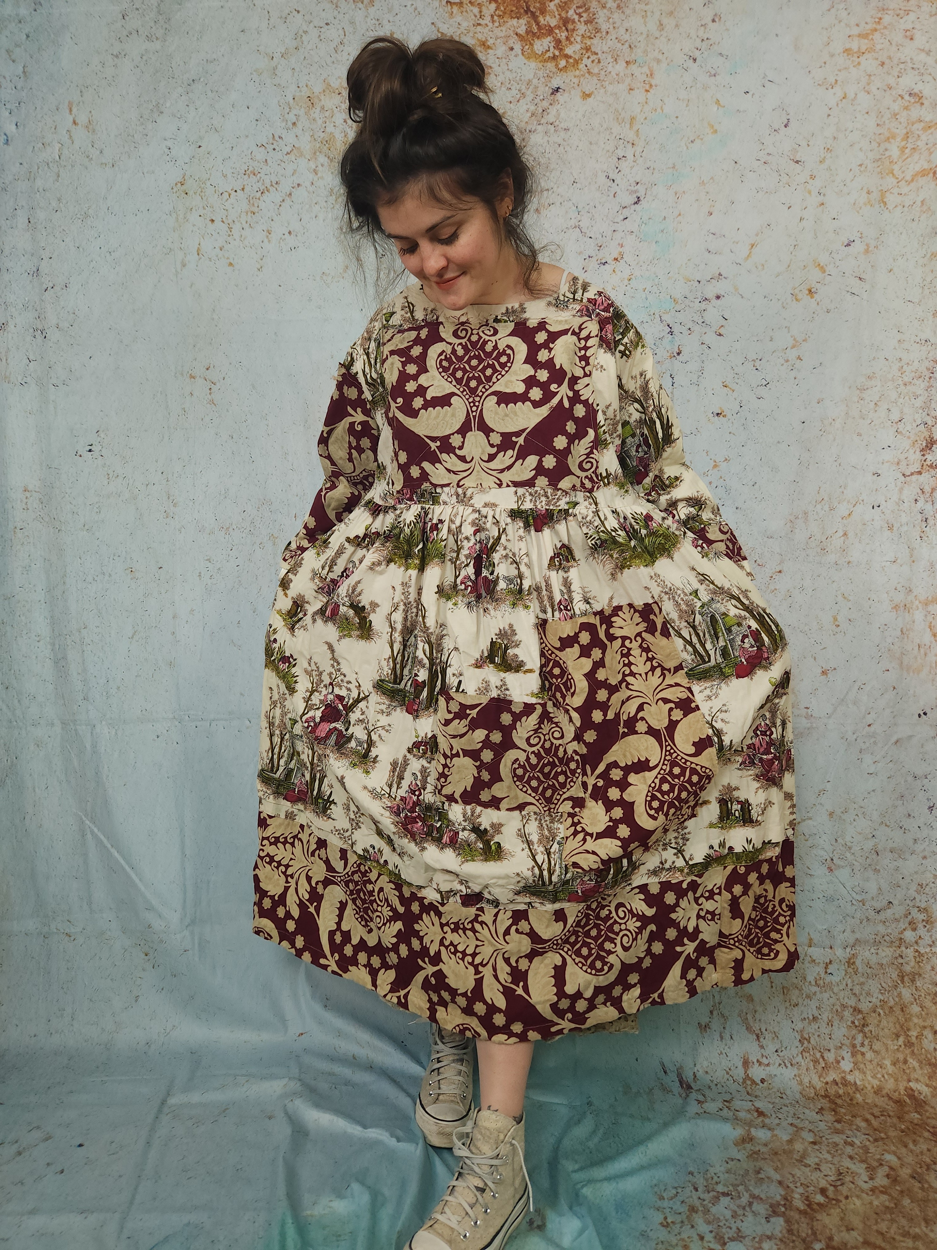 Pièce uniue pour cette robe réalisée dans une toile de Jouy