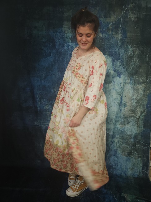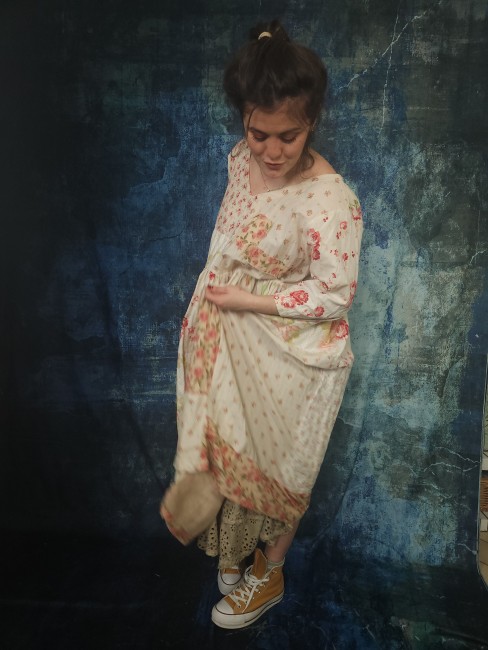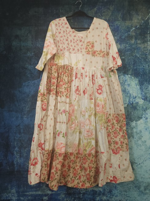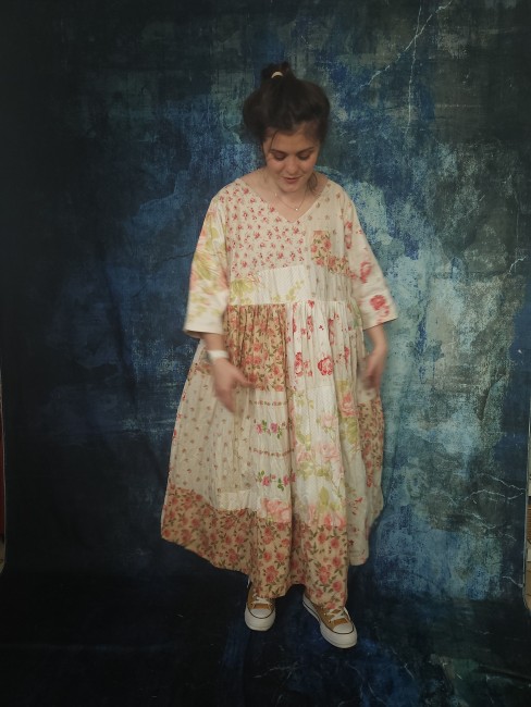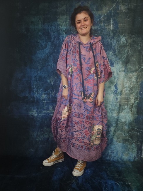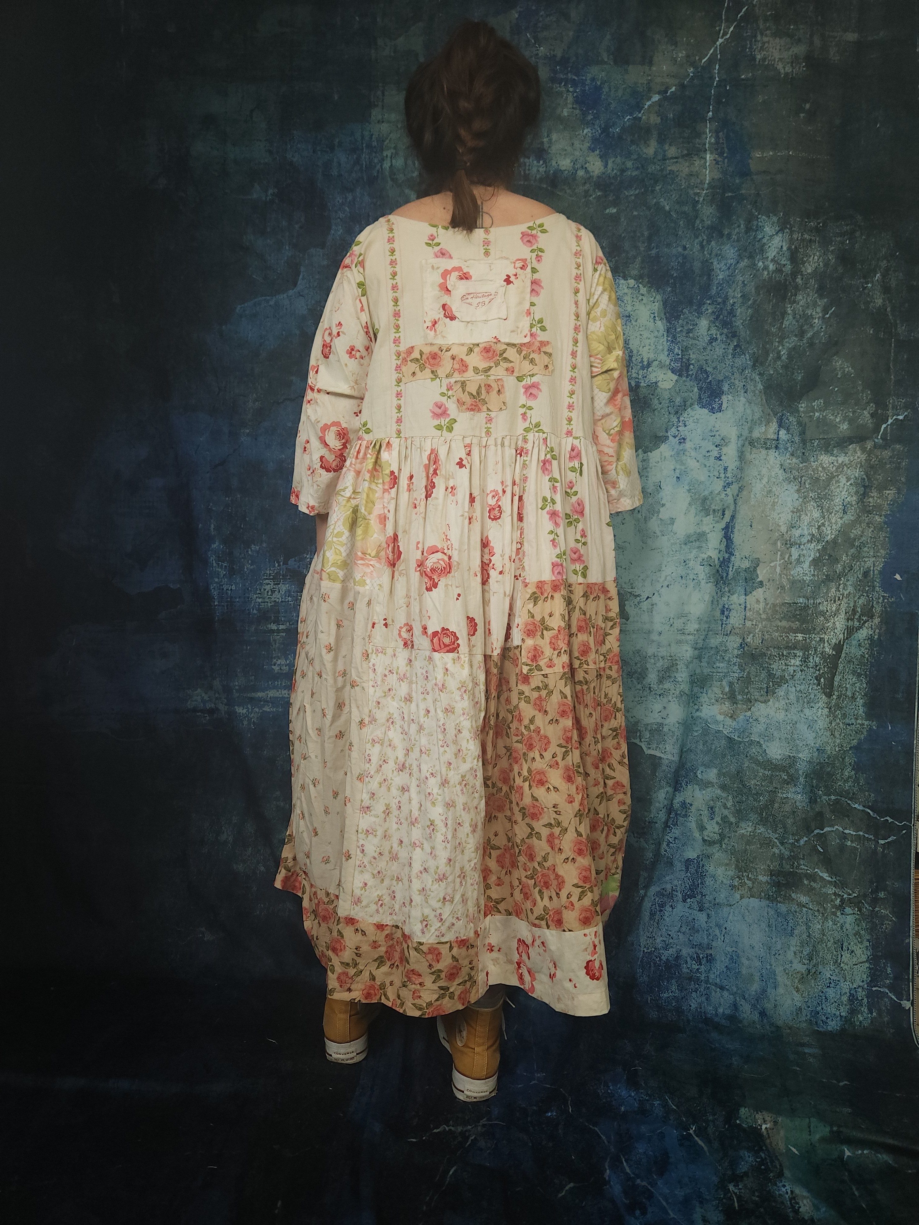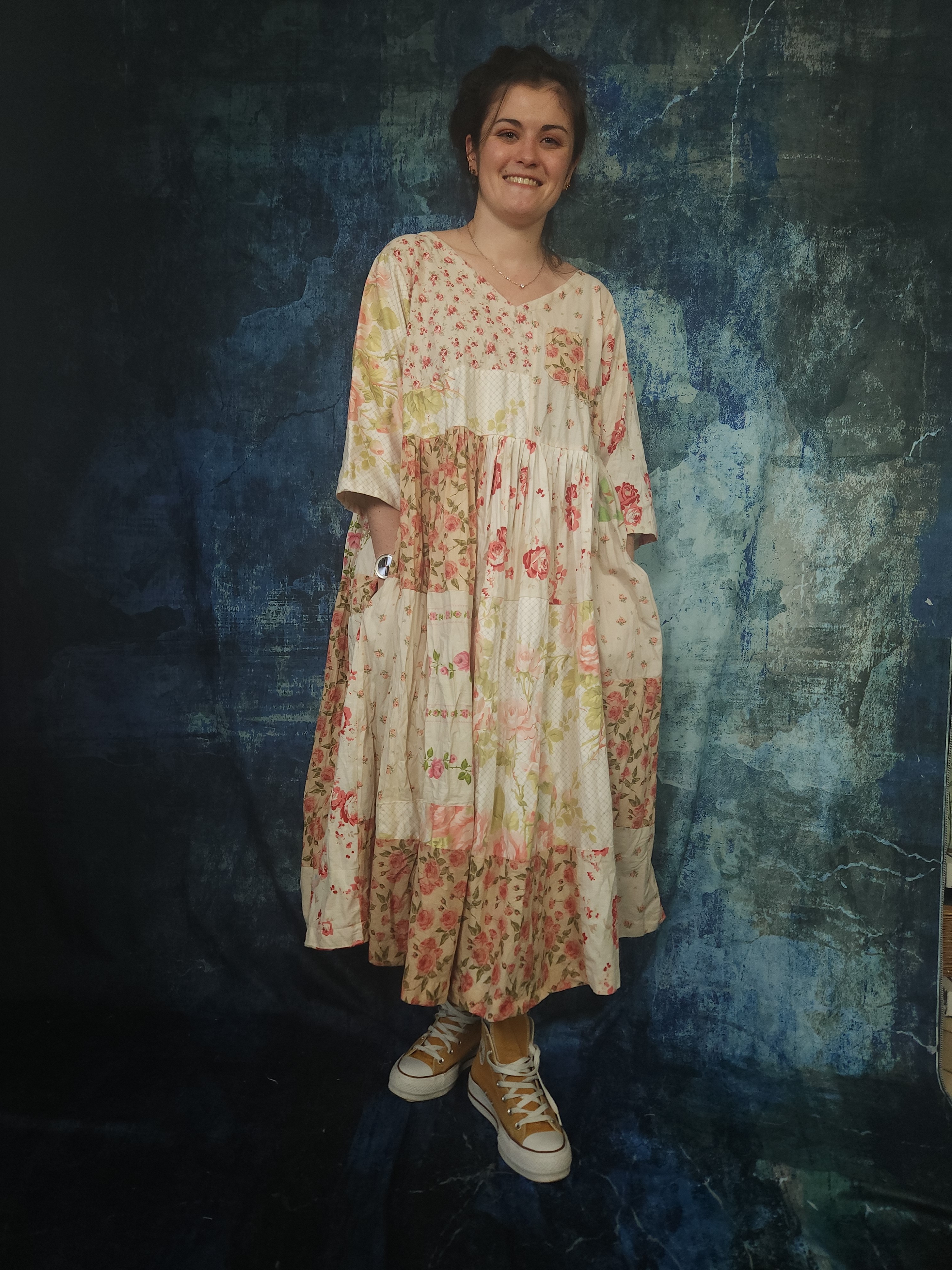 Robe ample réalisée à partir de plusieurs beaux textiles anciens