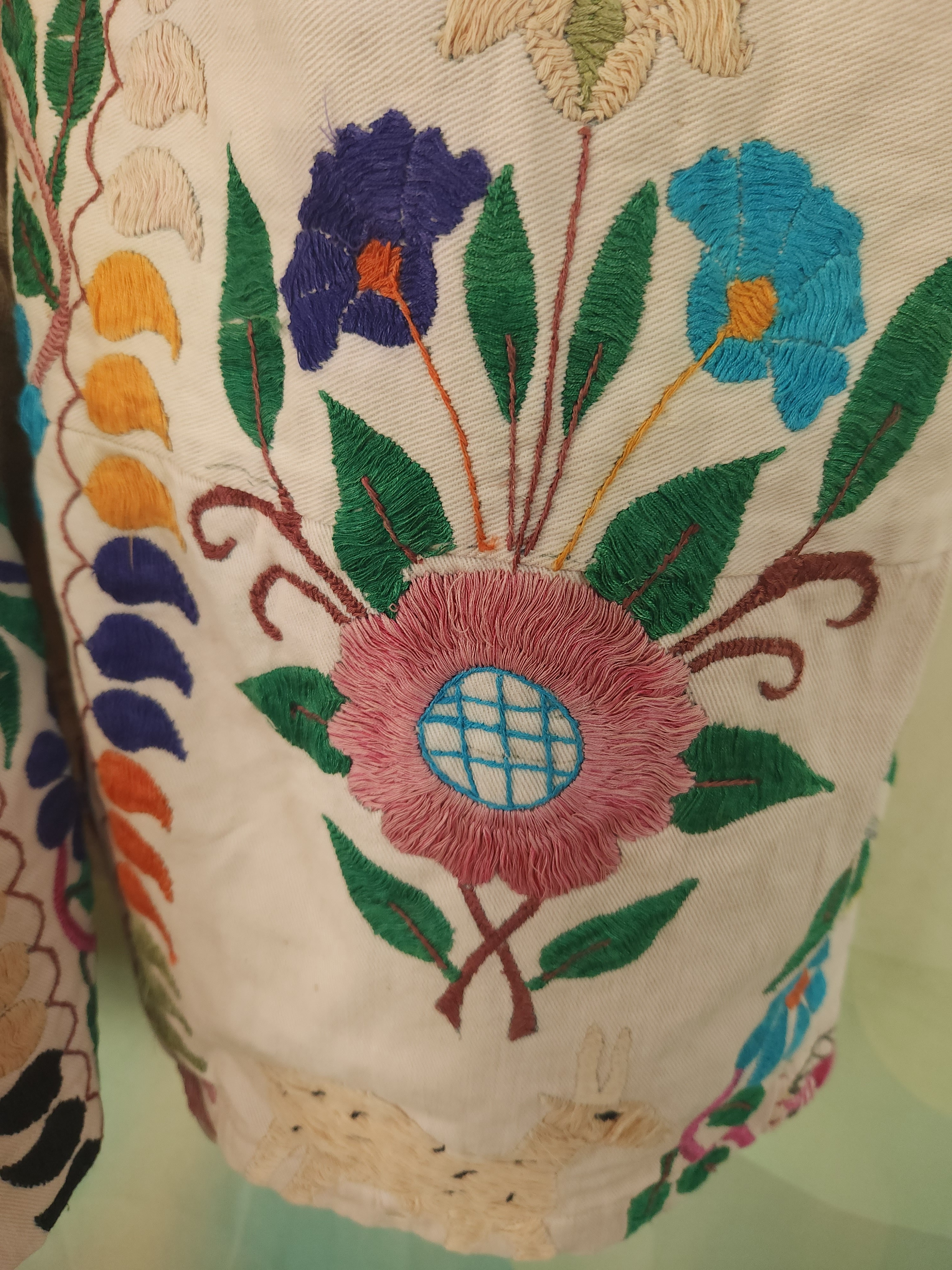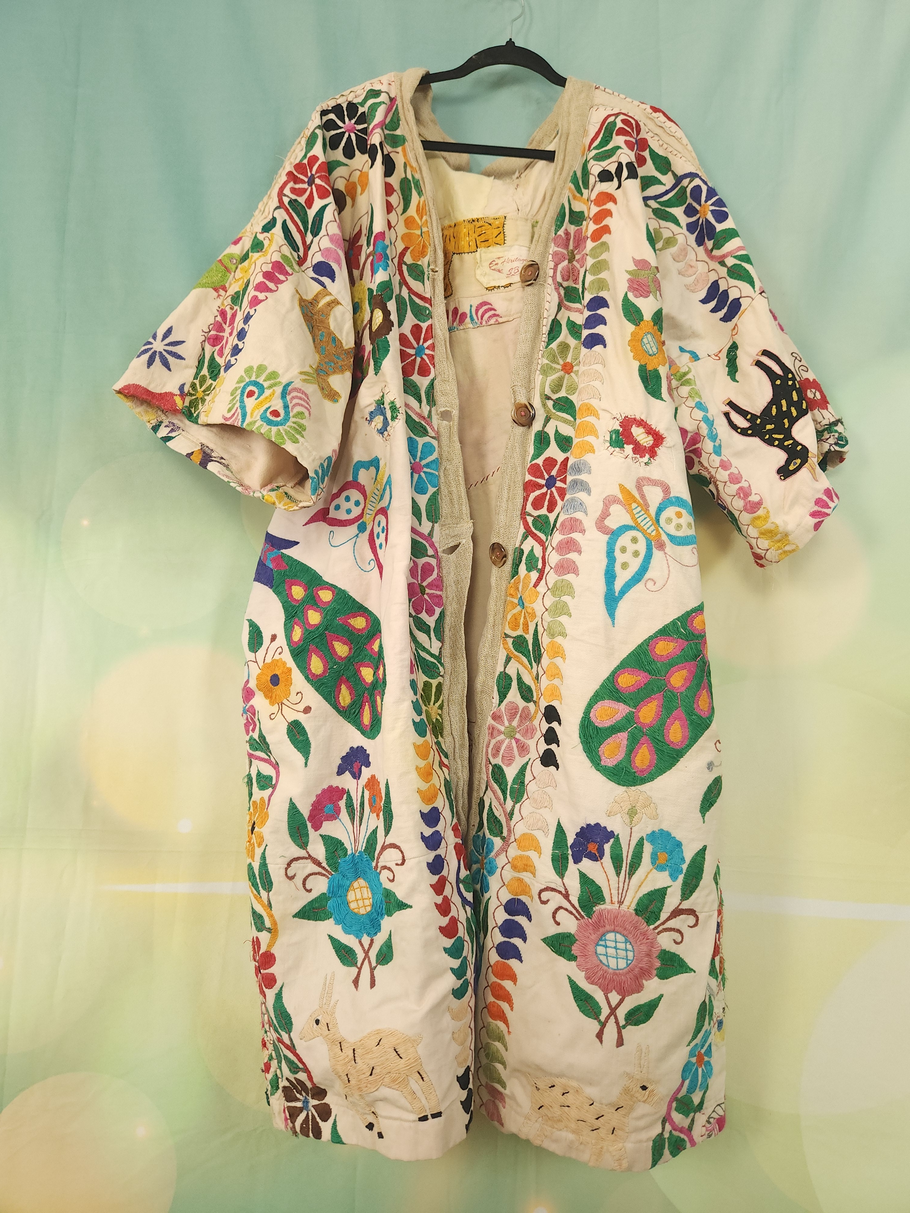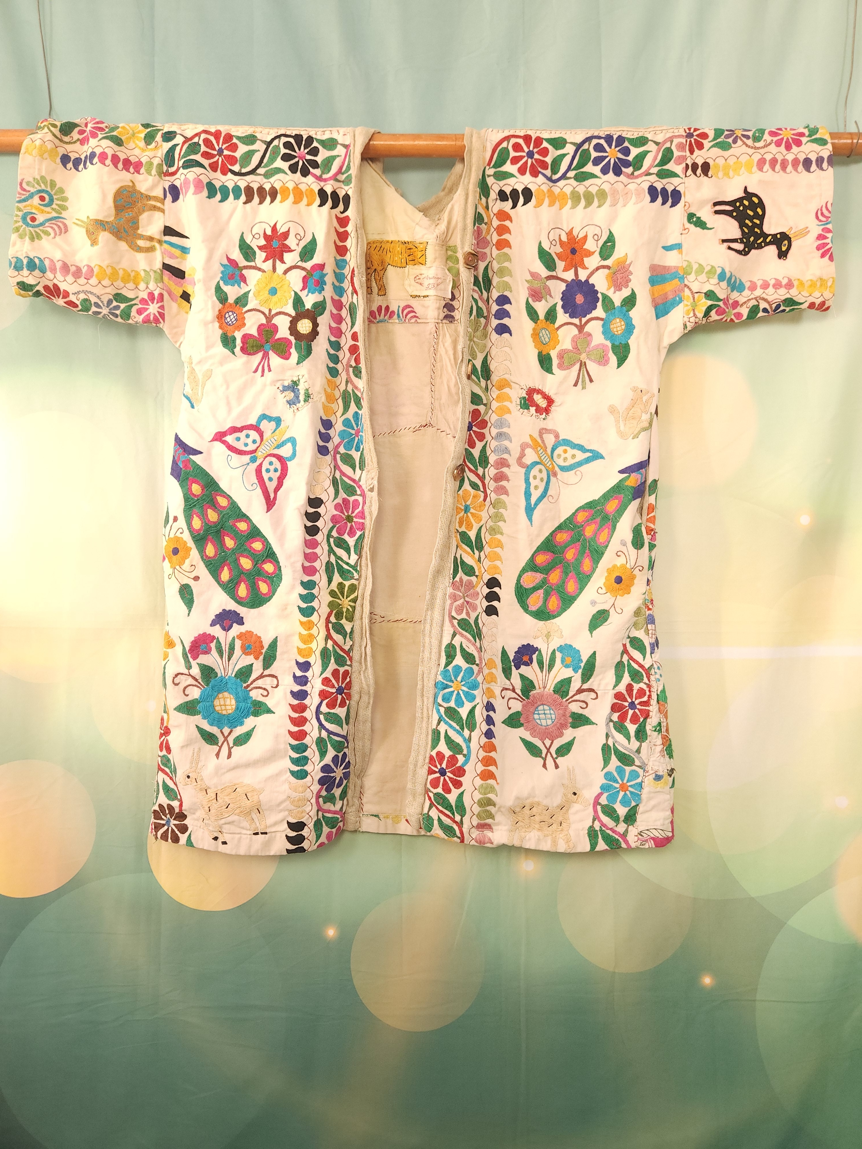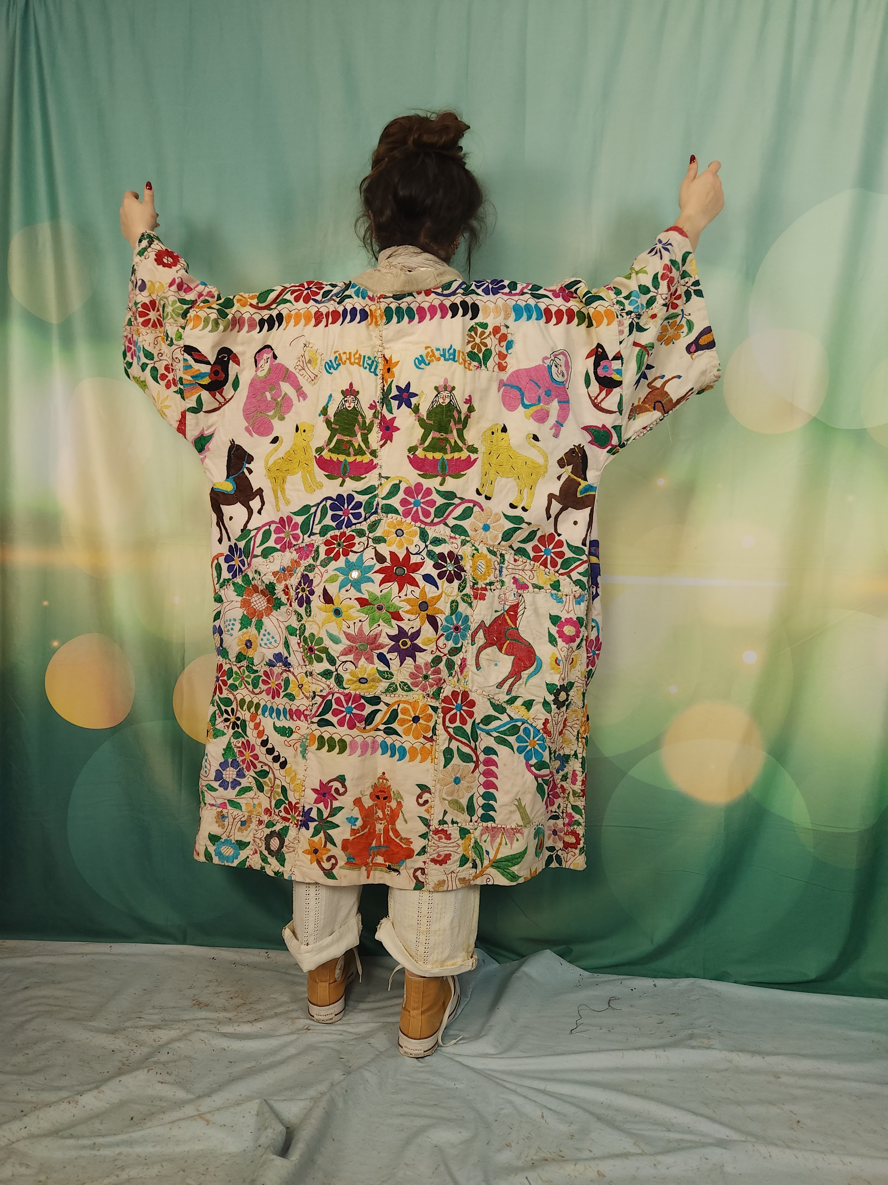 D'abord , une magnifique tenture indienne ancienne , en coton épais , remplie de broderies ,toutes réalisées à la main.