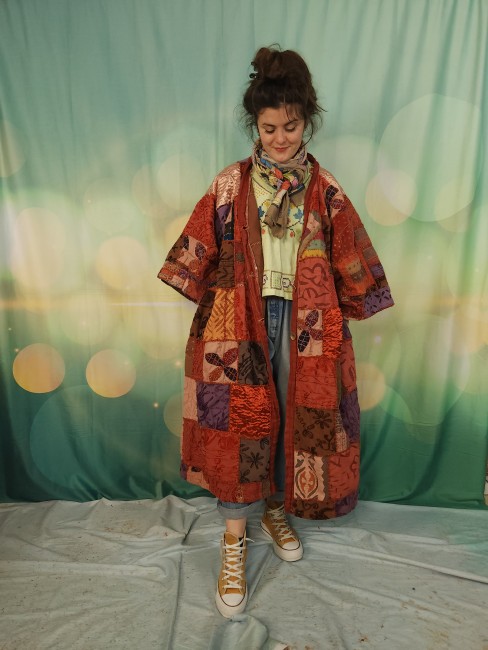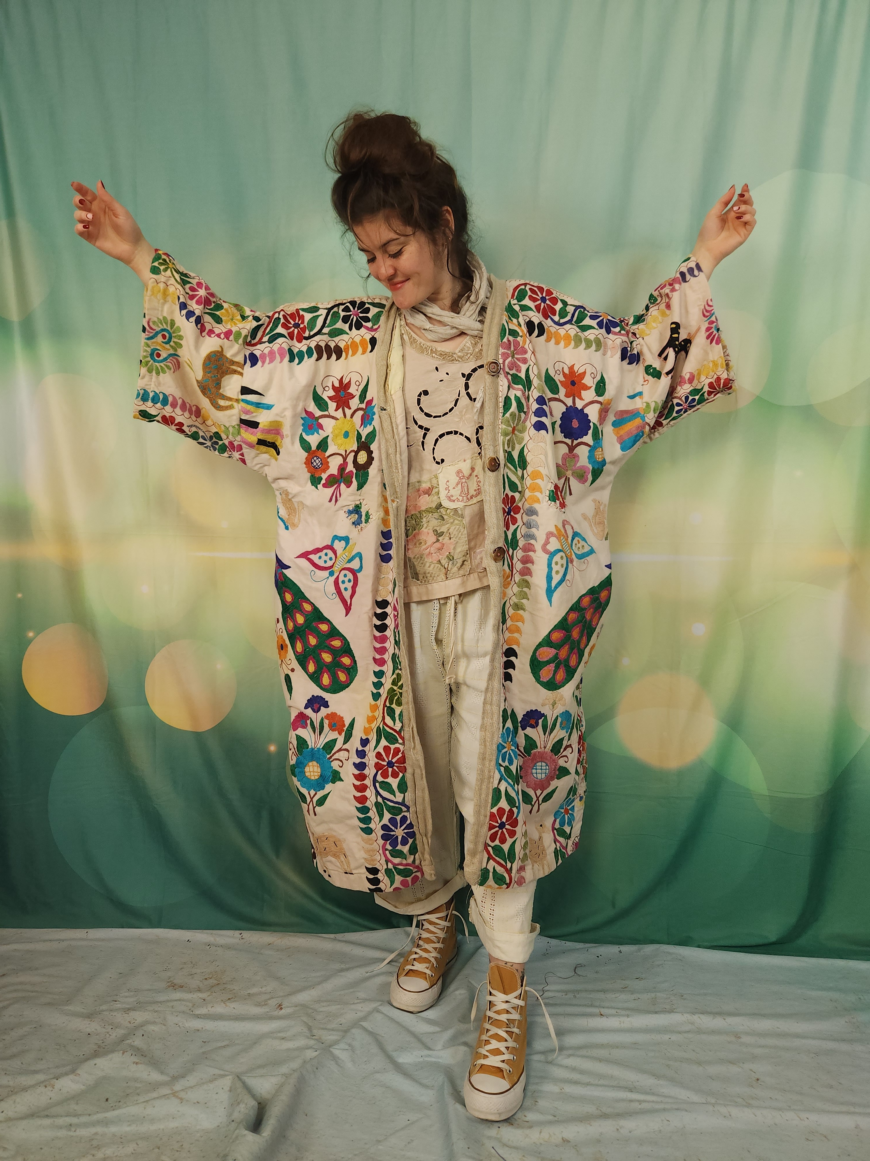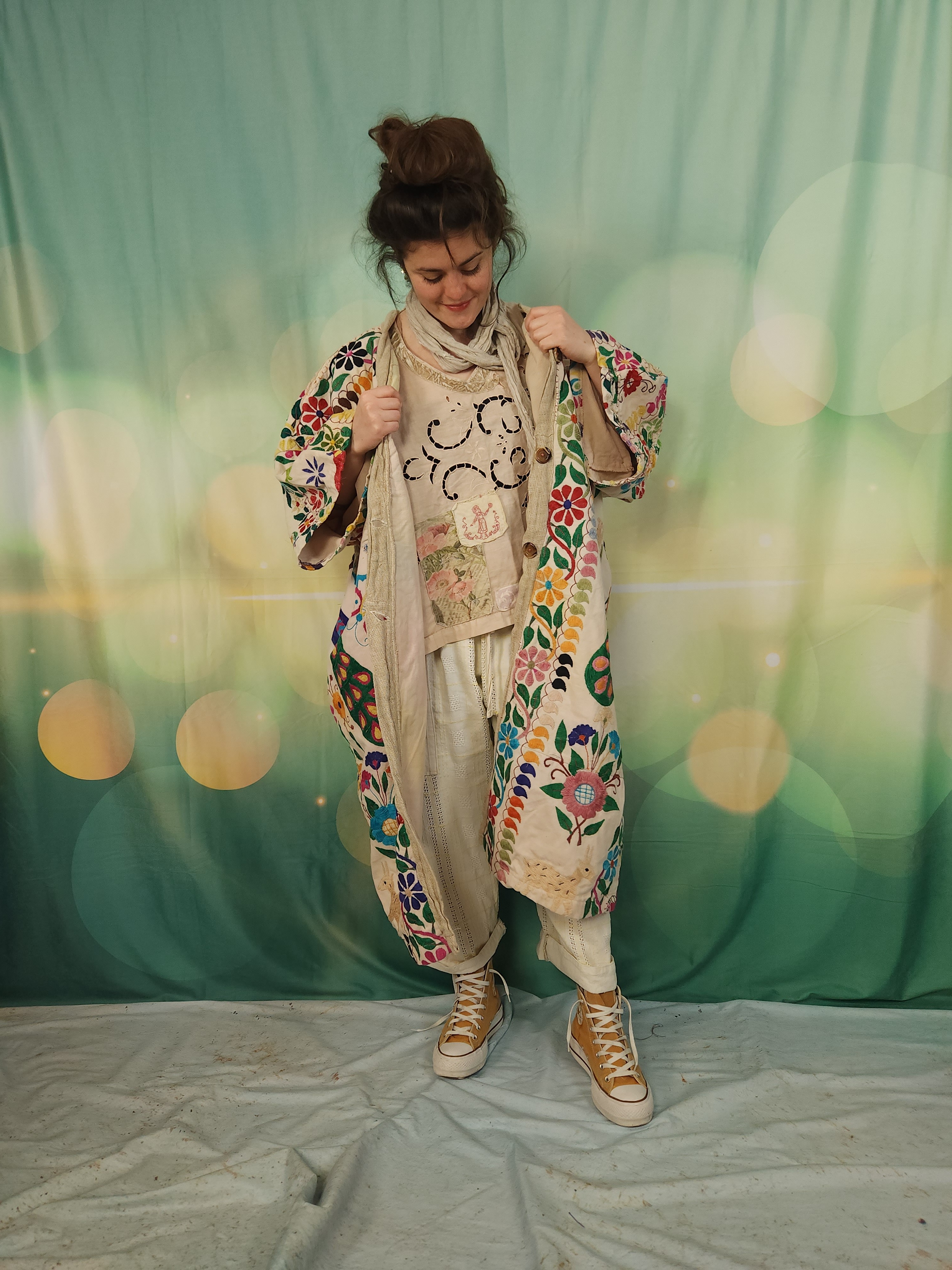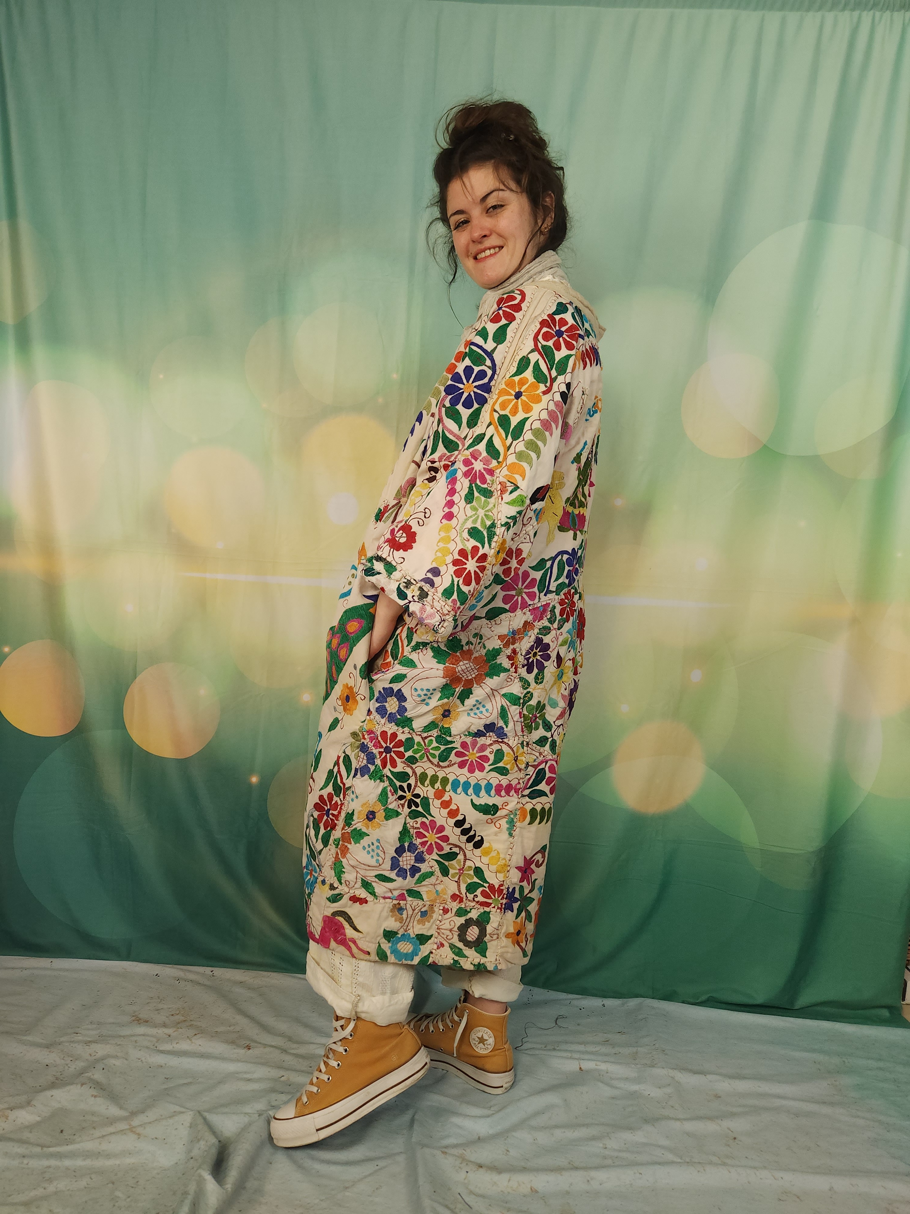 D'abord , une magnifique tenture indienne ancienne , en coton épais , remplie de broderies ,toutes réalisées à la main.