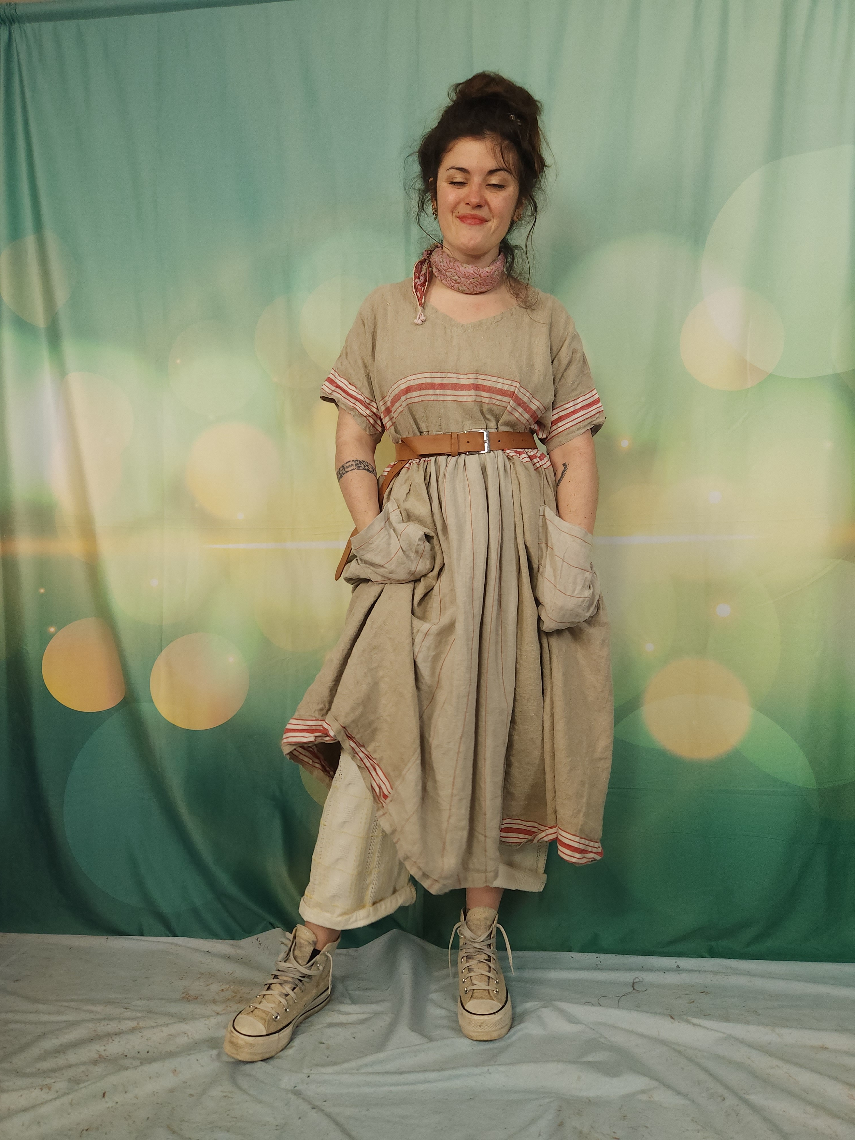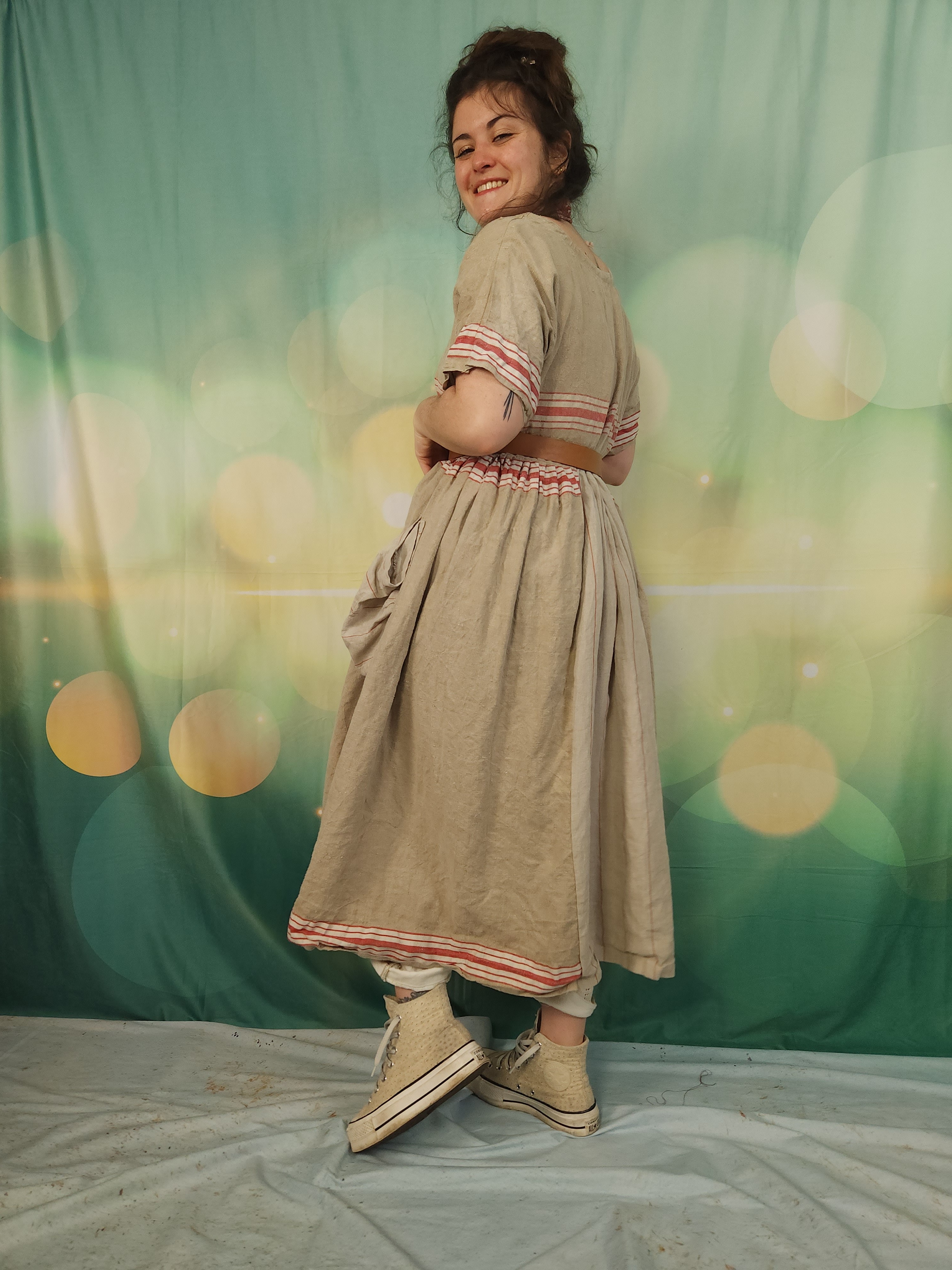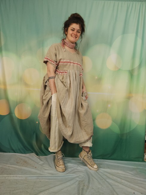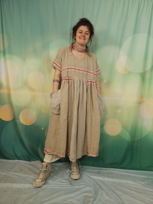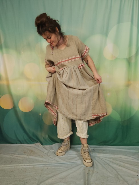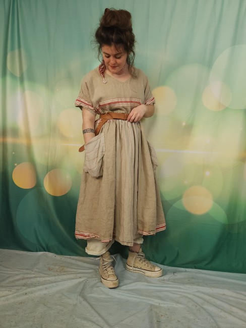 Pièce unique pour cette robe réalisée dans un superbe lin ancien .