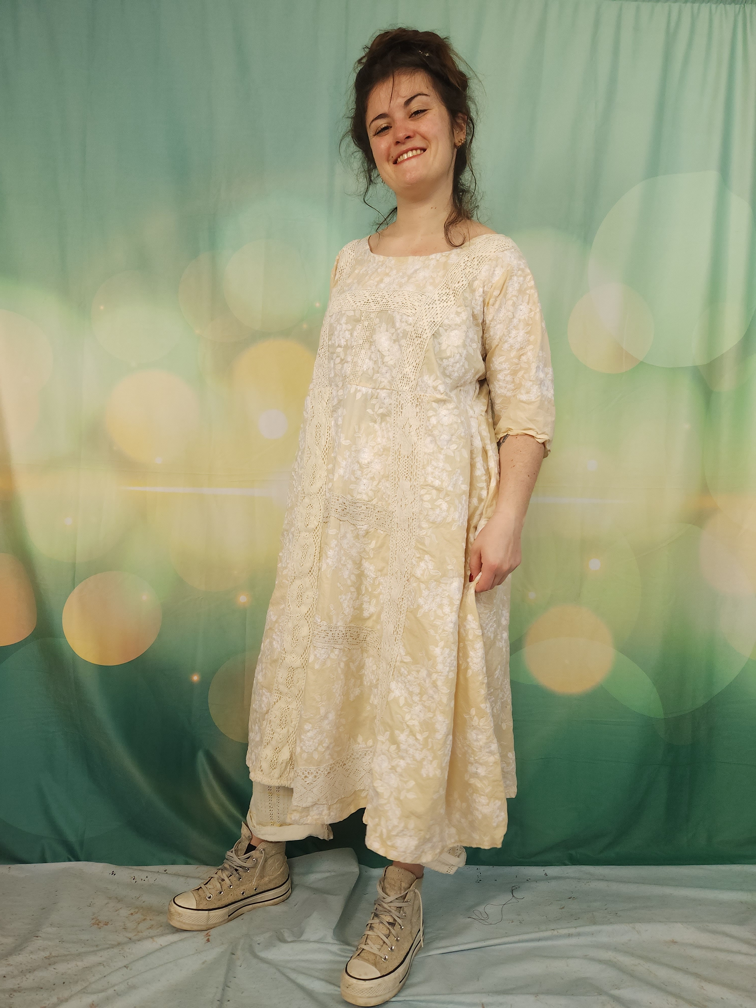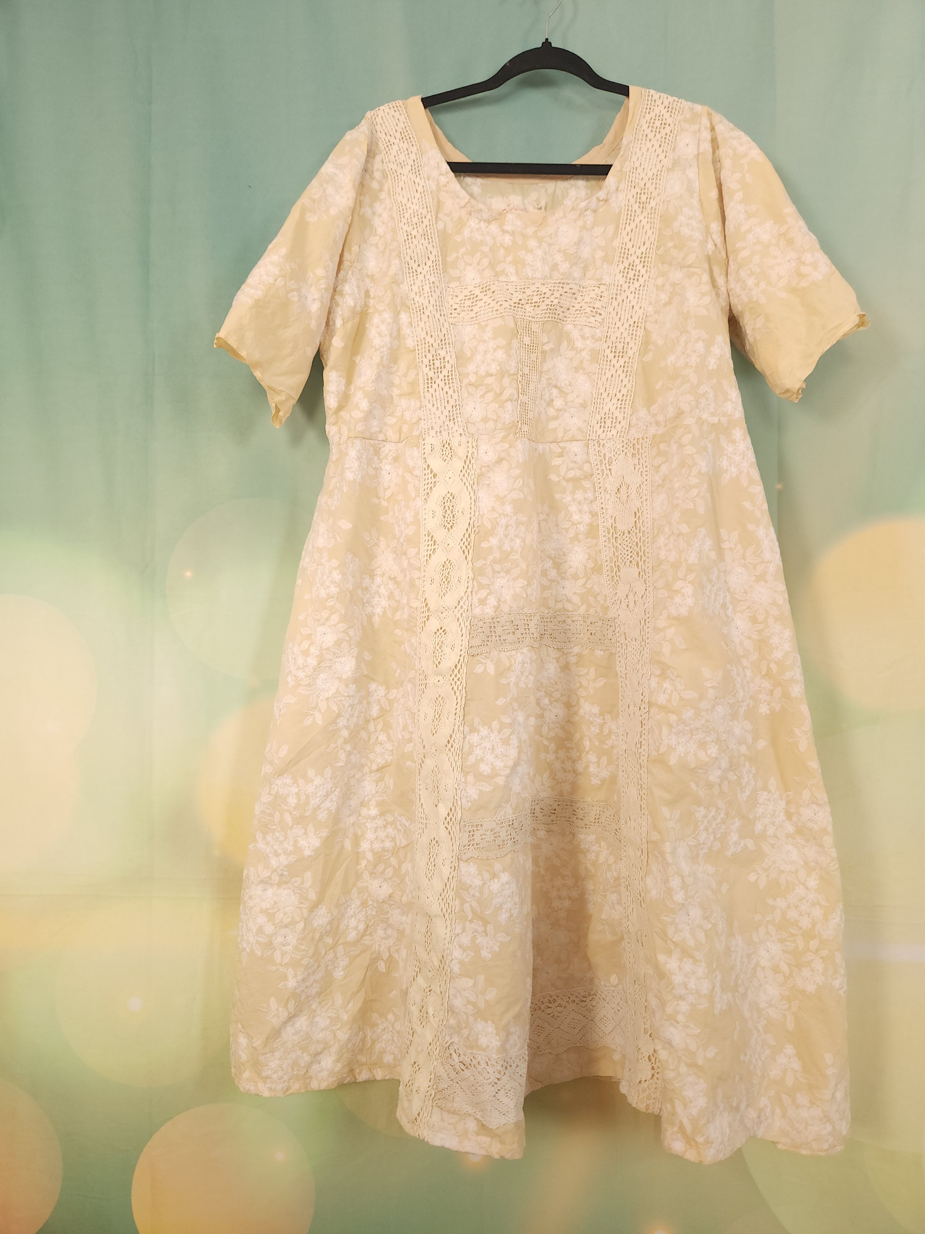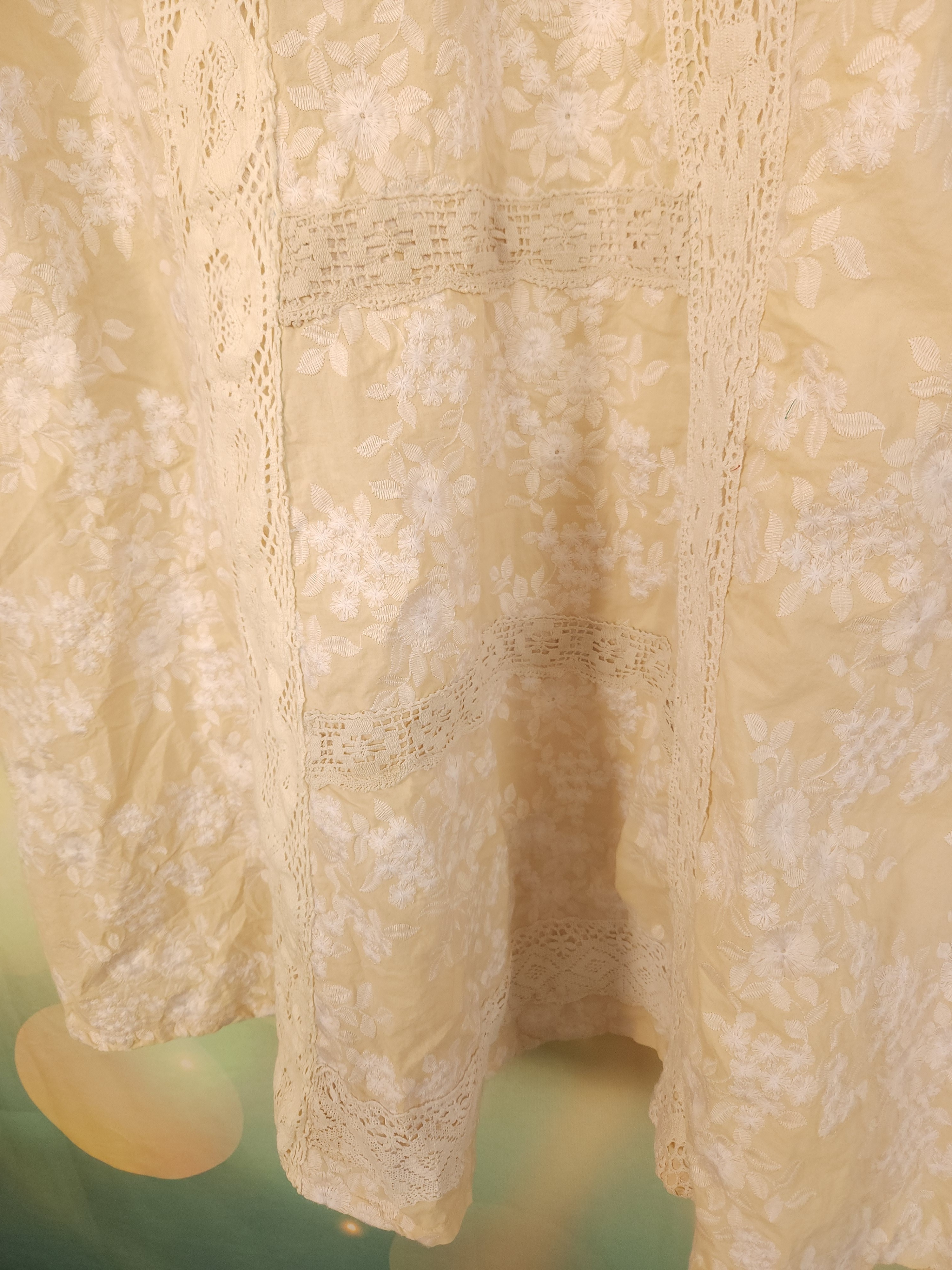 J'y ai ajouté de larges dentelles anciennes en coton