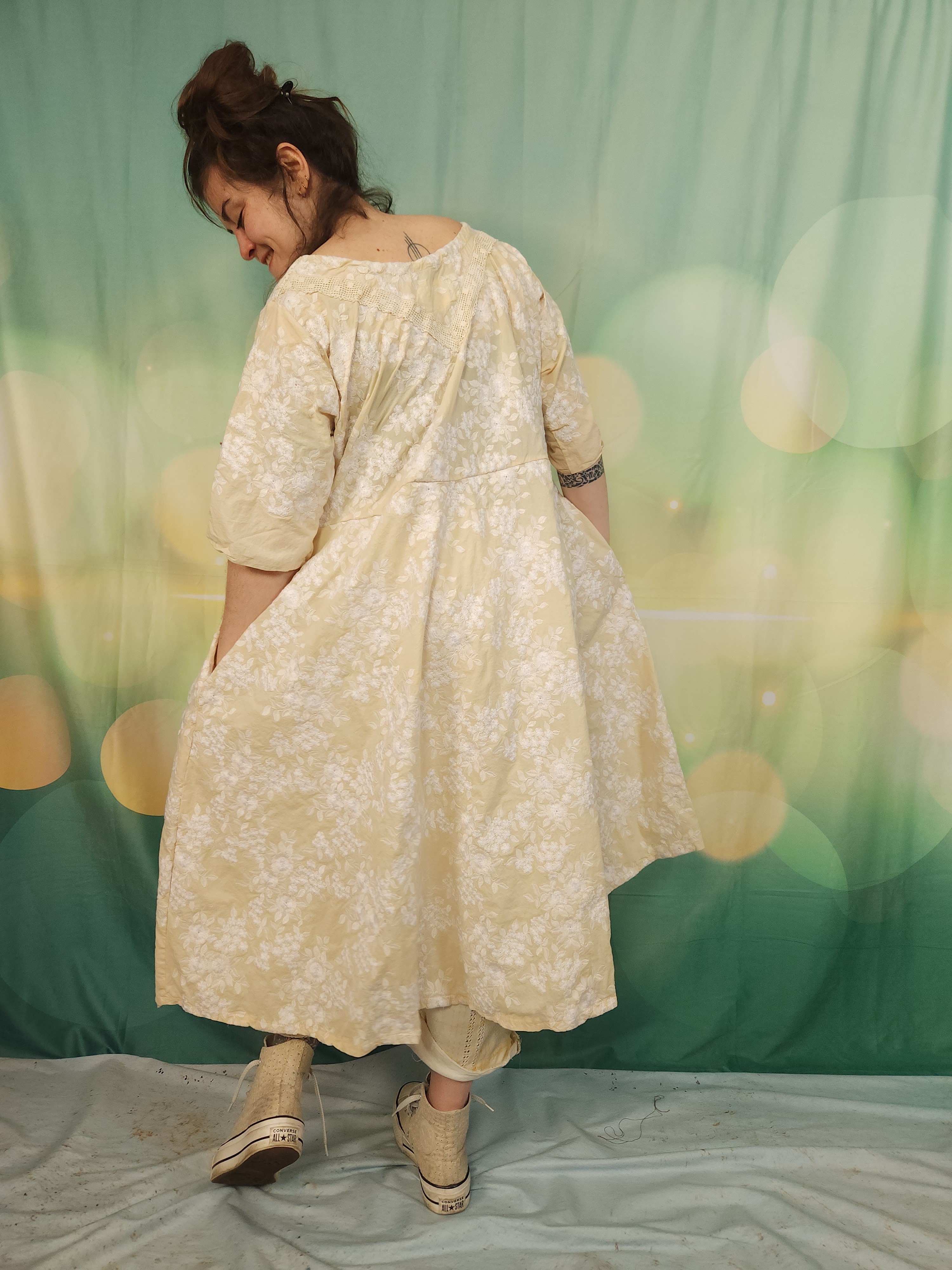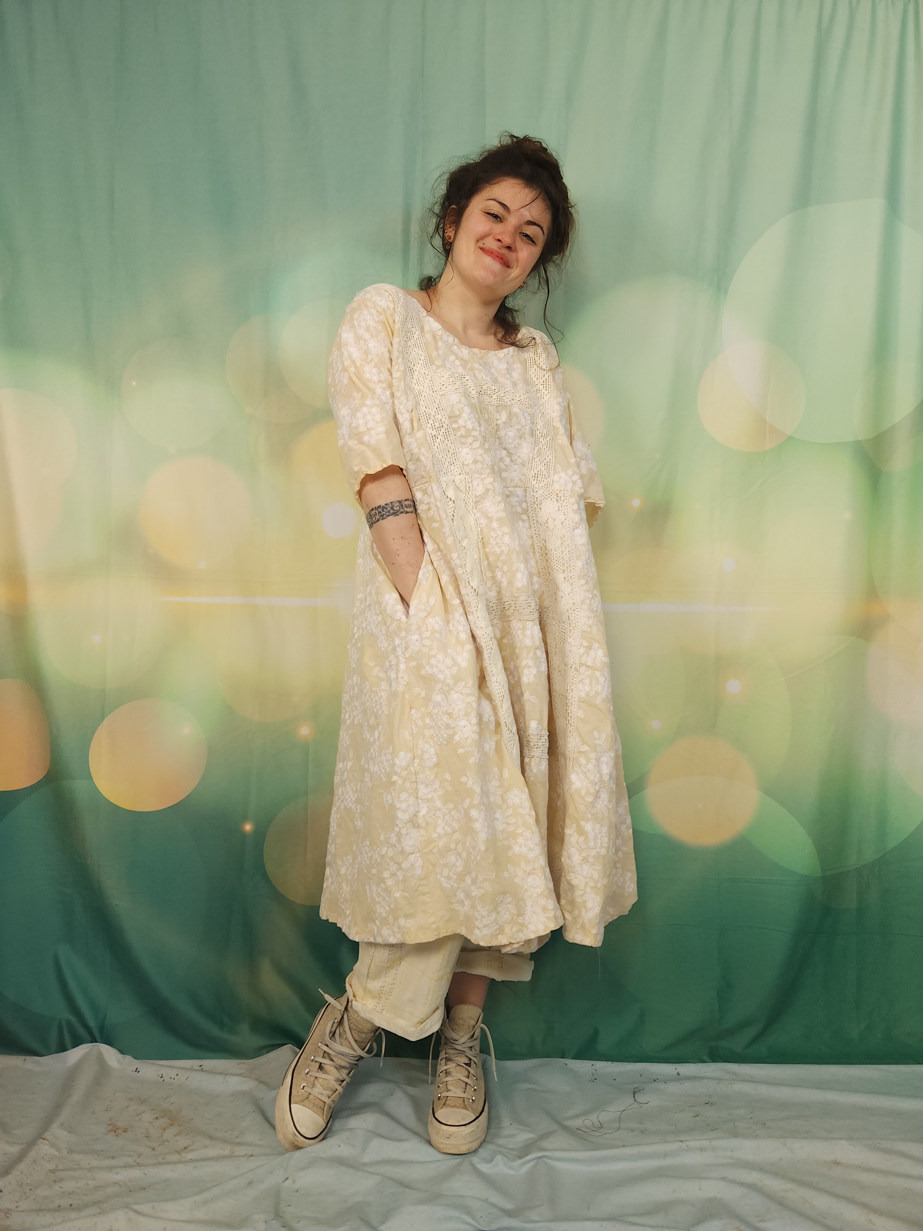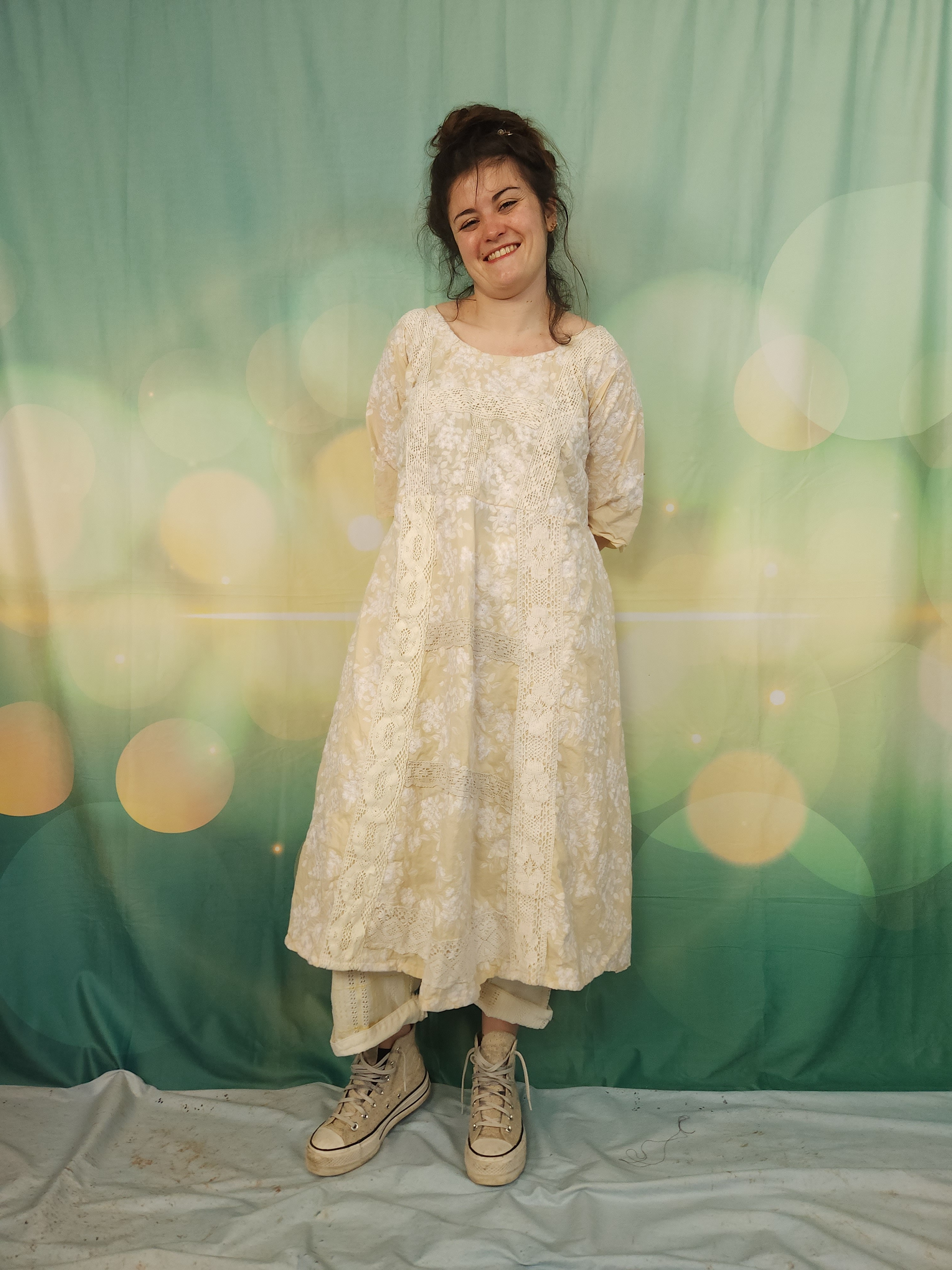 J'y ai ajouté de larges dentelles anciennes en coton