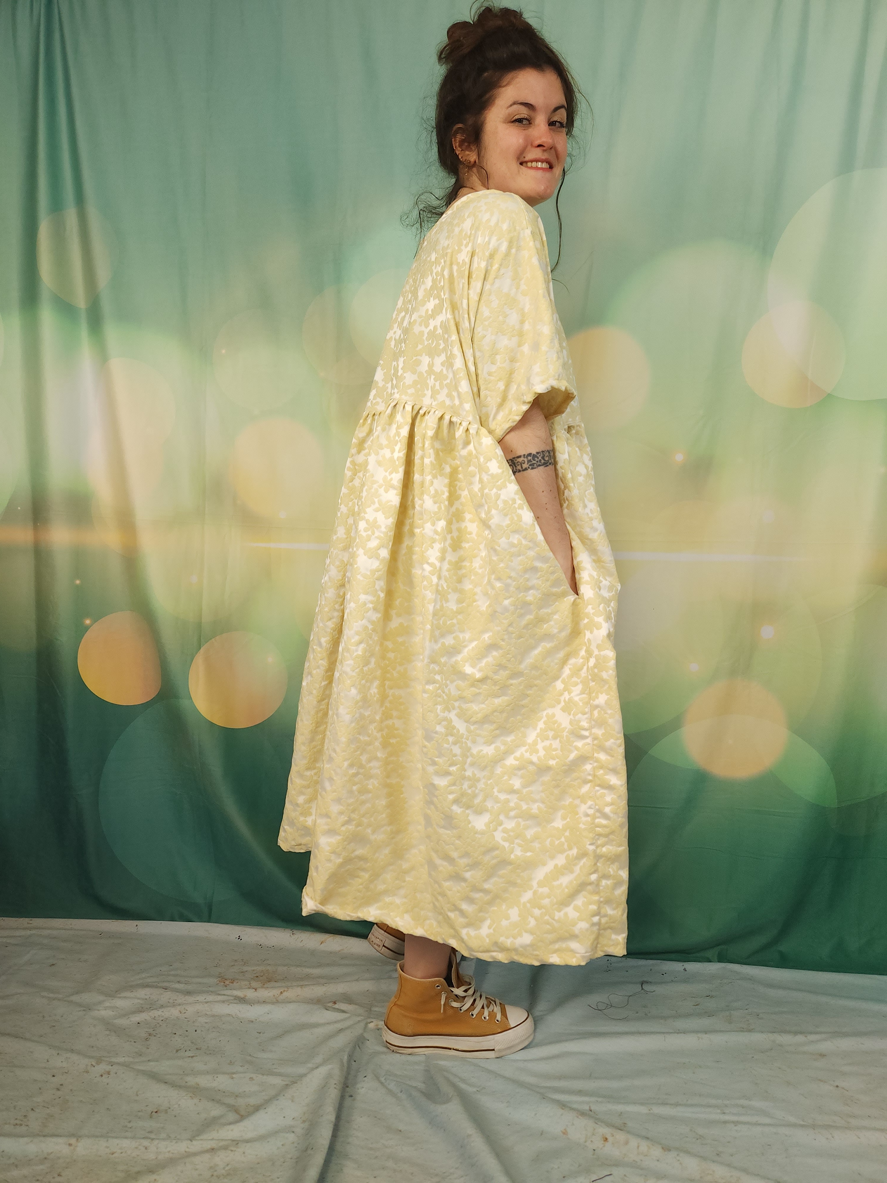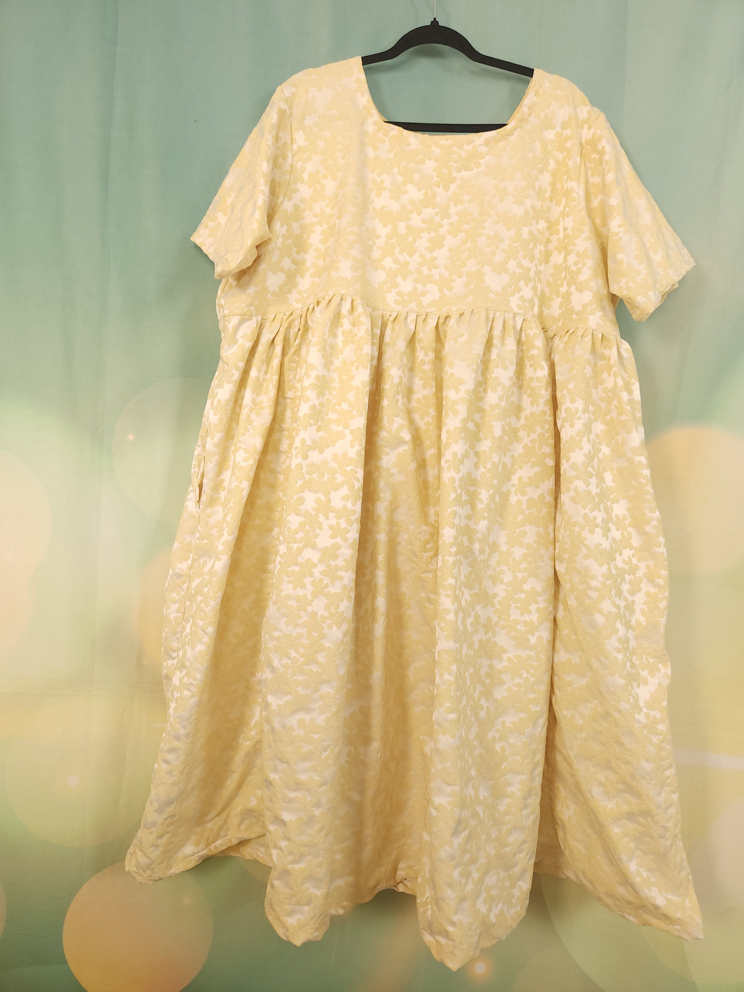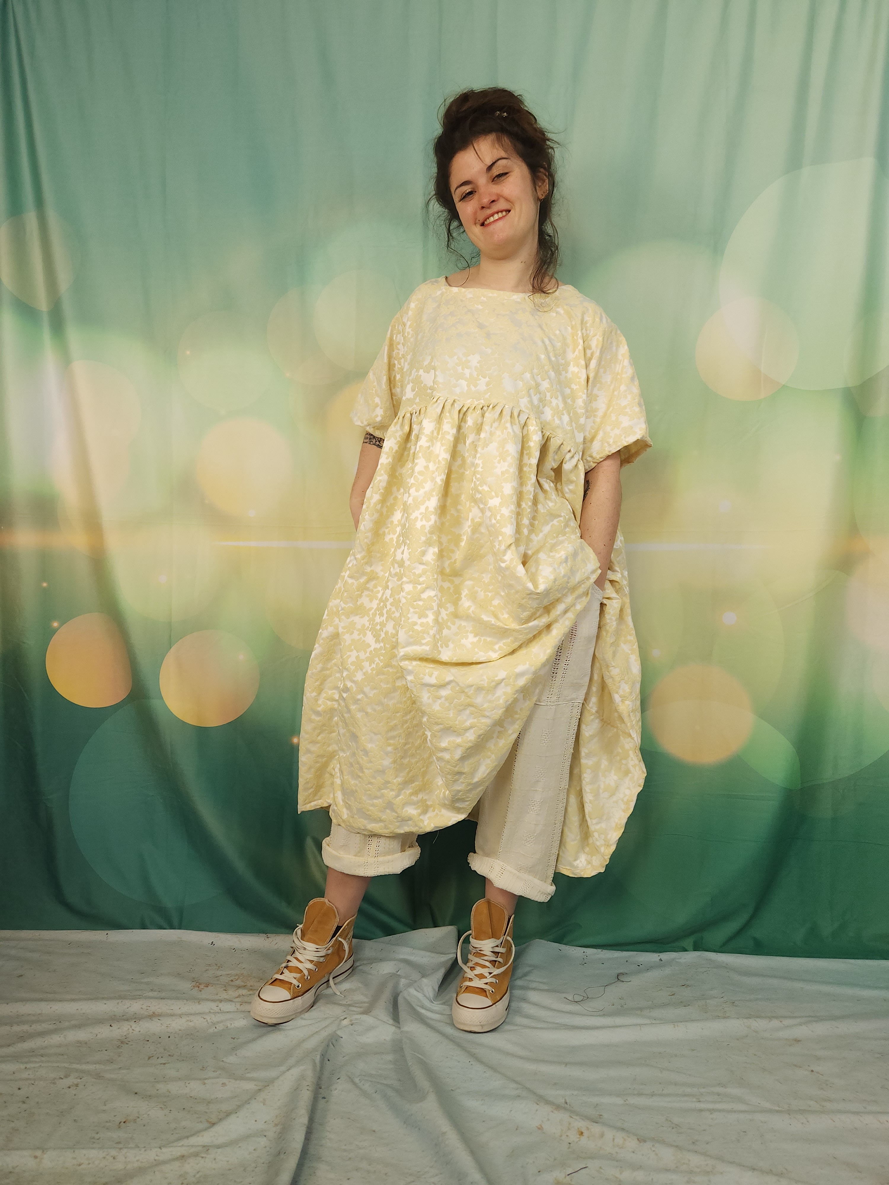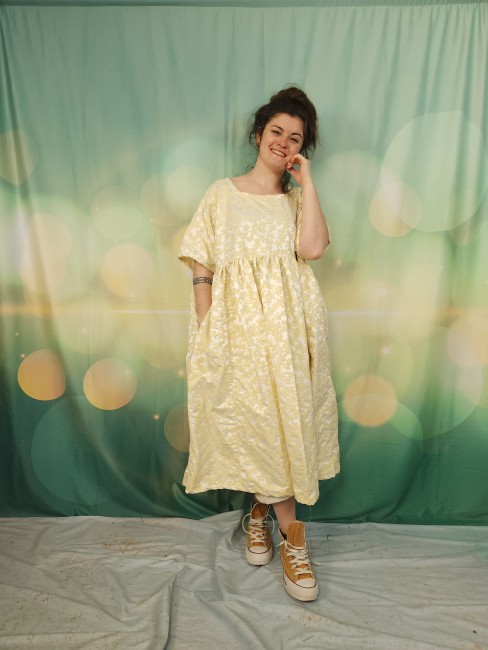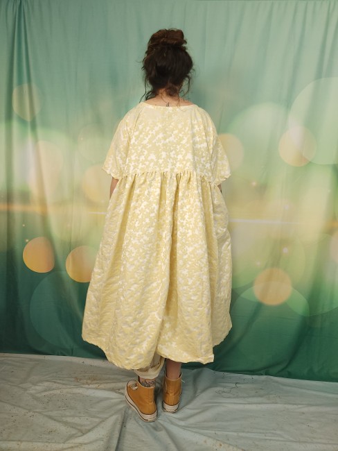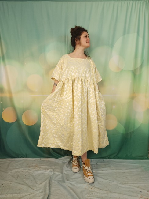 Robe oversize réalisée dans un genre de taffetas avec fleurs en relief