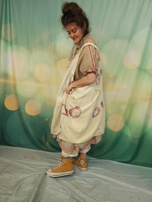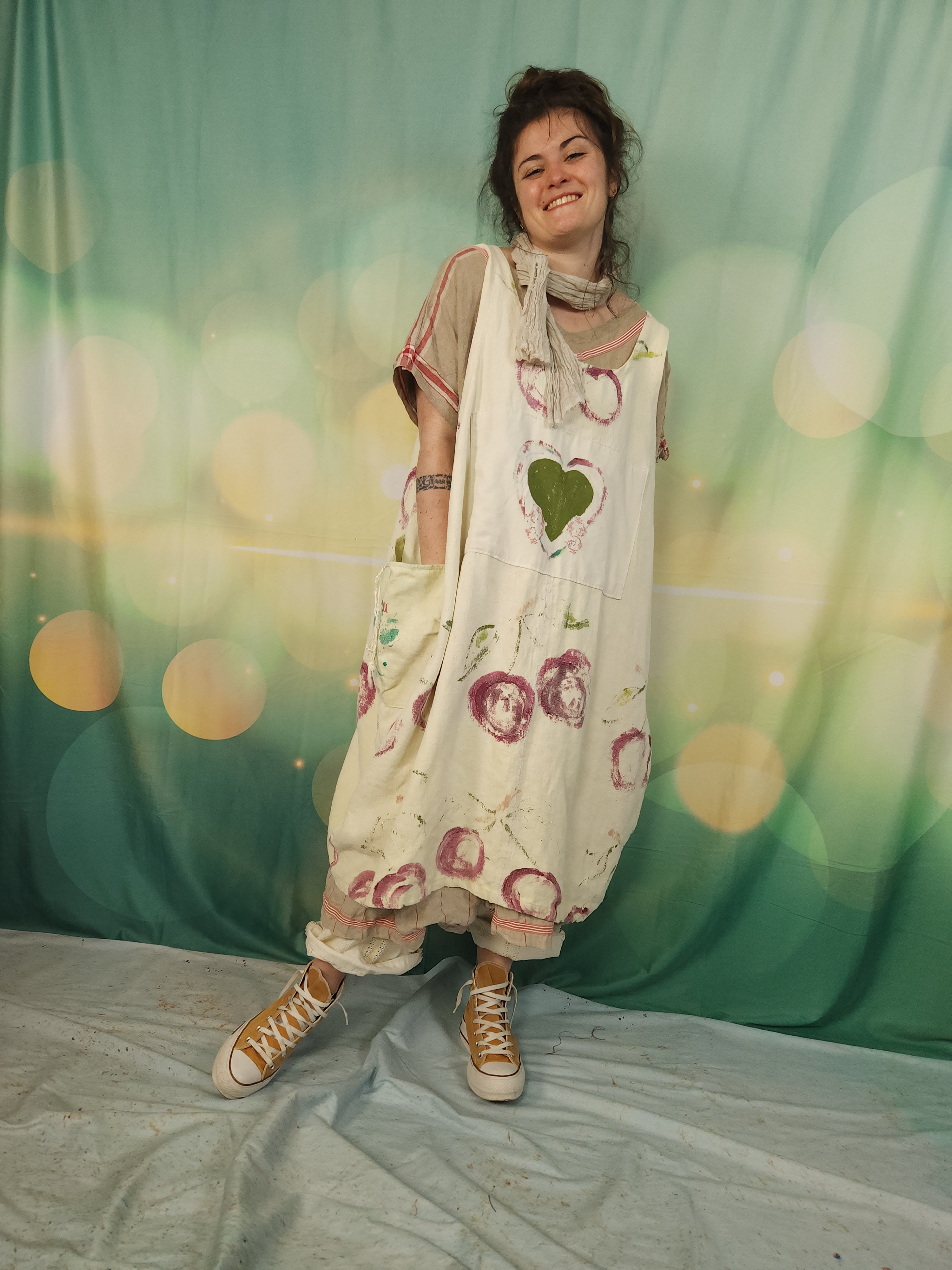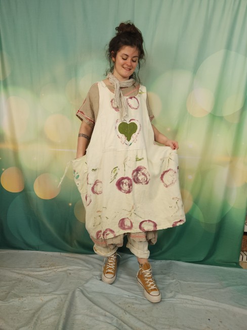 Pièce unique pour cette robe/tablier réalisée dans un beau chanvre ancien