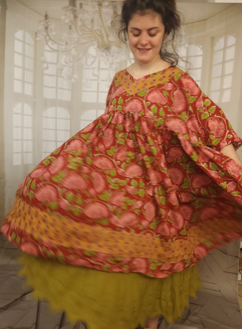 Pièce unique , robe trapèze , bohème , impression textileRobe