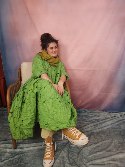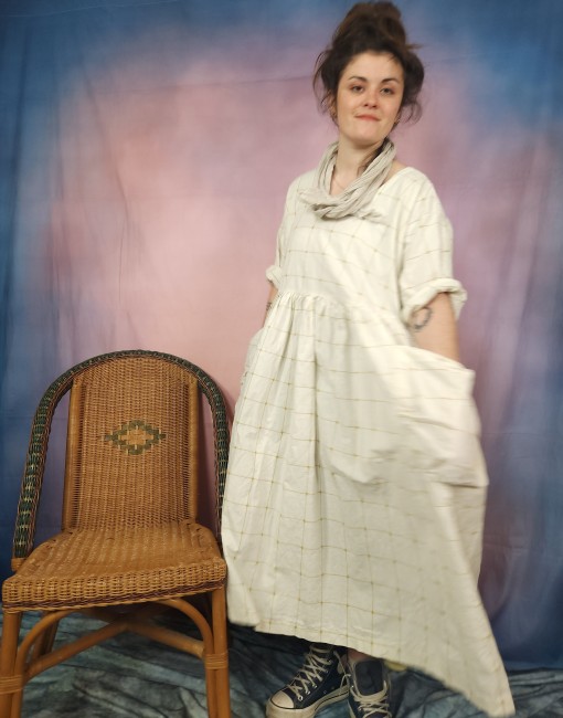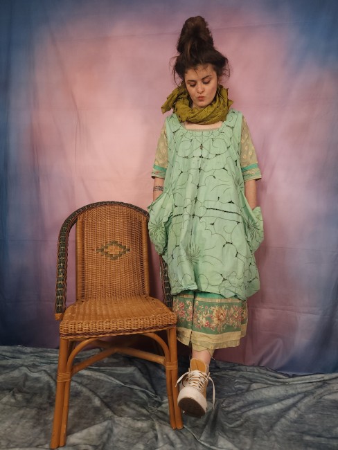 Pièce unique , robe double gaze de lin , oversize , soie patch , bohèmeRobe