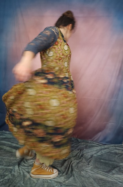 Robe trapèze , velours ras , bohème , impression originaleRobe