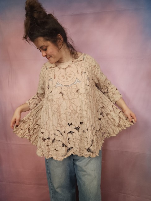 Pièce unique, broderies Richelieu, linge ancien, bohème, shabbyTunique