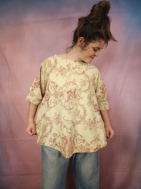Pièce unique , tunique toile de Jouy , shabby , bohèmeTunique